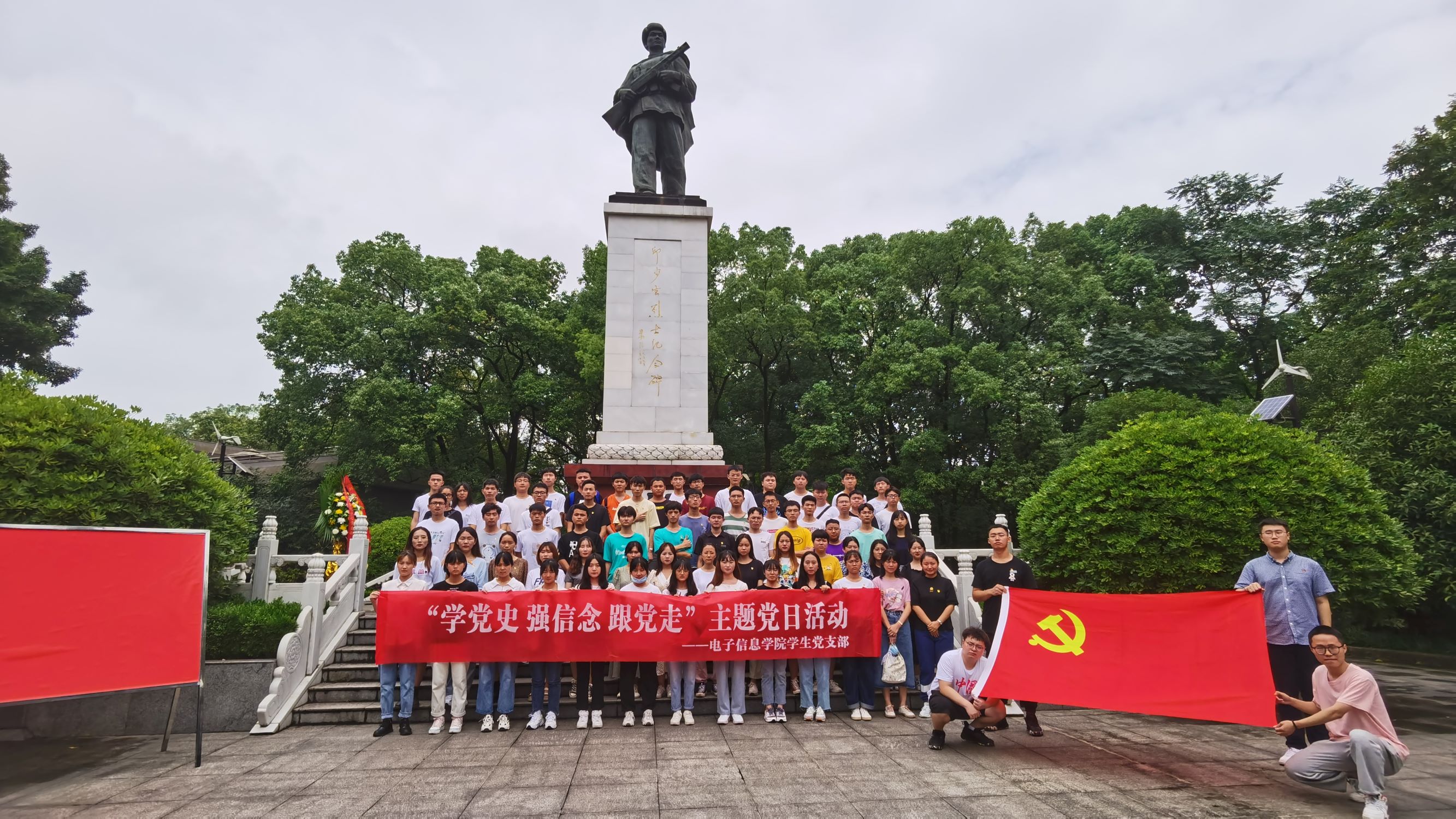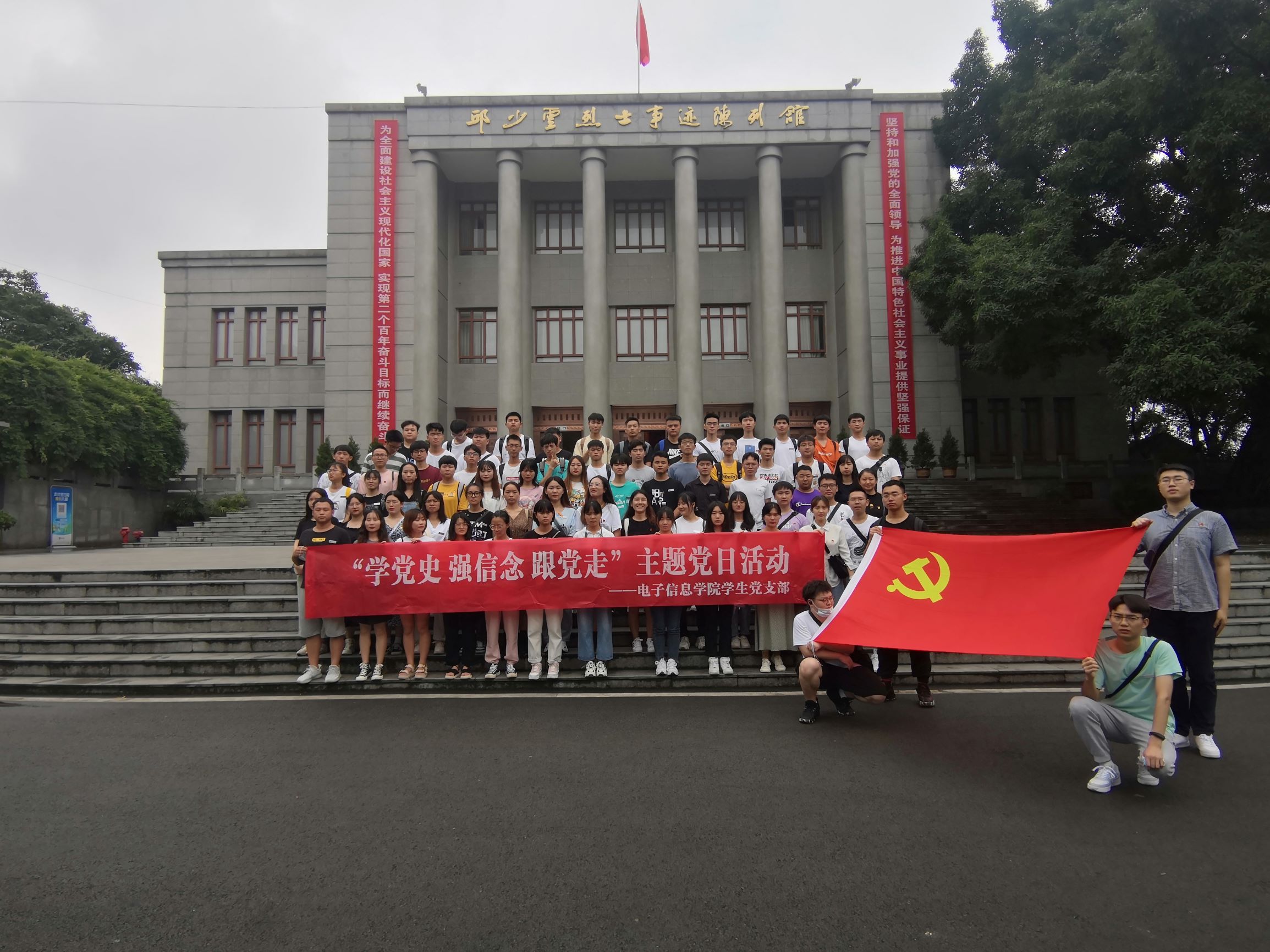 为进一步充分发挥基层党组织战斗堡垒作用和共产党员先锋模范作用。电子信息学院学生党支部于2021年6月27日8:30前往邱少云烈士纪念馆开展 “学党史,强信念,跟党走”主题党日教育实践活动,电子信息学院学生党支部书记宋文轩同志、电子信息学院组织员黄炼旗同志、电子信息学院部分在校学生党员、预备党员、发展对象共80名同志参加。