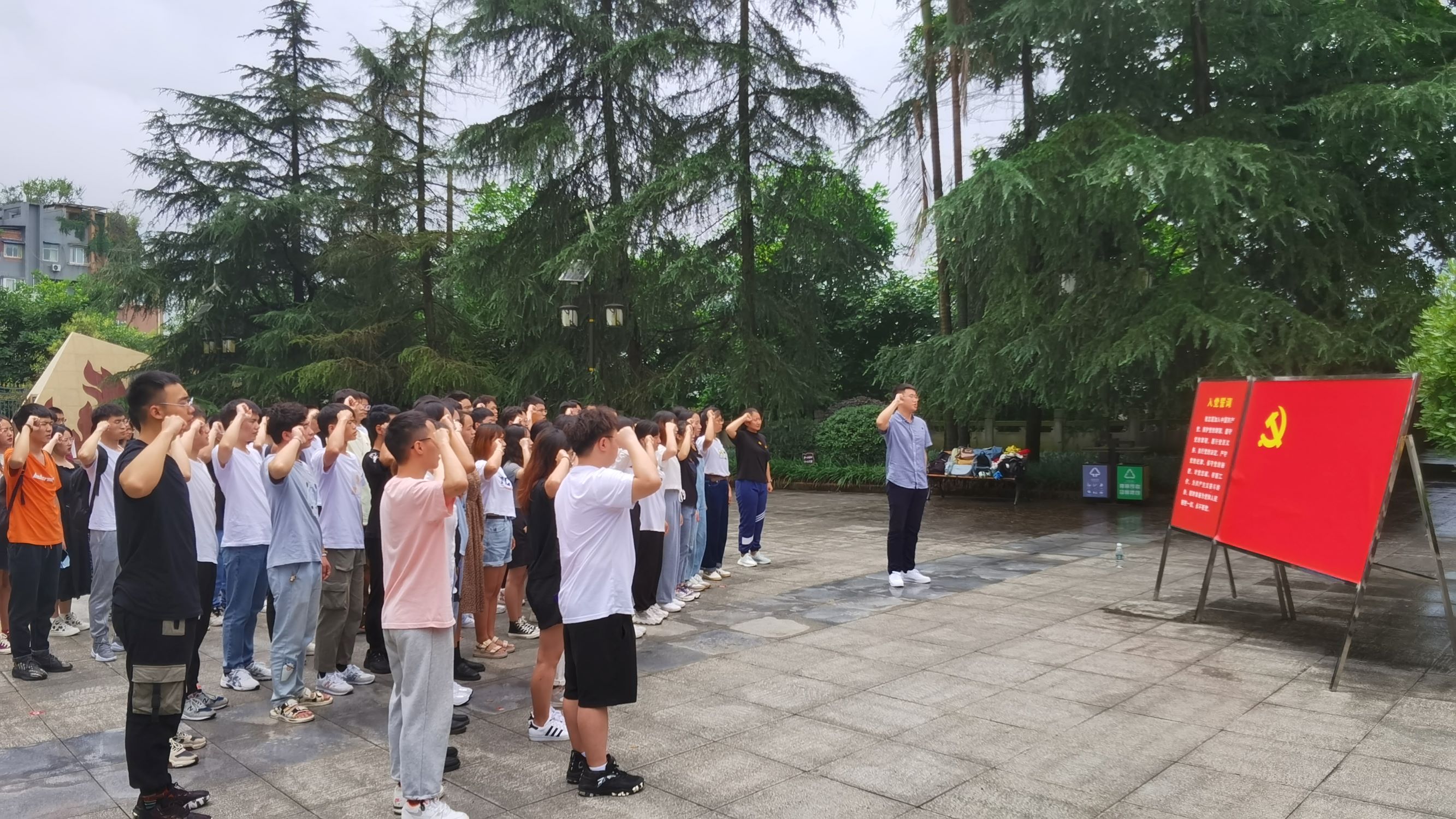 参观结束后,在邱少云革命纪念馆前,宋老师与黄老师一一为新接收的32名预备党员们佩戴党徽。“我宣誓,我志愿加入中国共产党……”这是郑凯译同志在带领大家进行庄严宣誓,这铿锵有力,遍响邱少云革命纪念馆的宣誓声也表达了同志们对党的无限忠诚和为共产主义奋斗终生的决心。