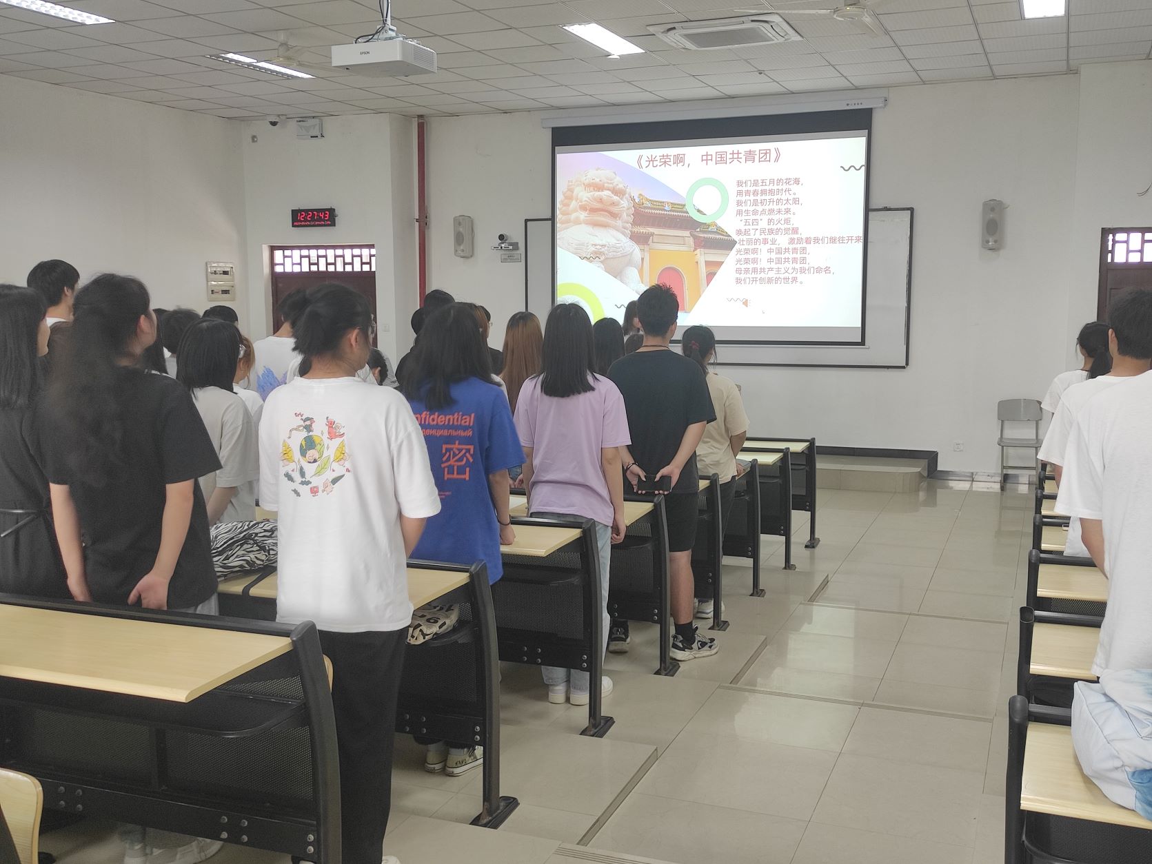 回望百年,青春向党。为加深青年学生对共青团的认识,增强新时代青年的责任感、使命感、荣誉感,5月25日,电子信息学院学生第一党支部、第二党支部联合开展“青春向党 百年风华”庆祝共青团成立一百周年主题党日活动,活动由沈鸿英同志主持,全体预备党员、发展对象、入党积极分子共计100人参与活动。