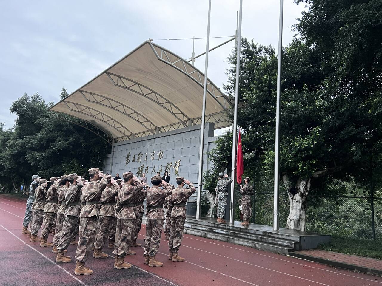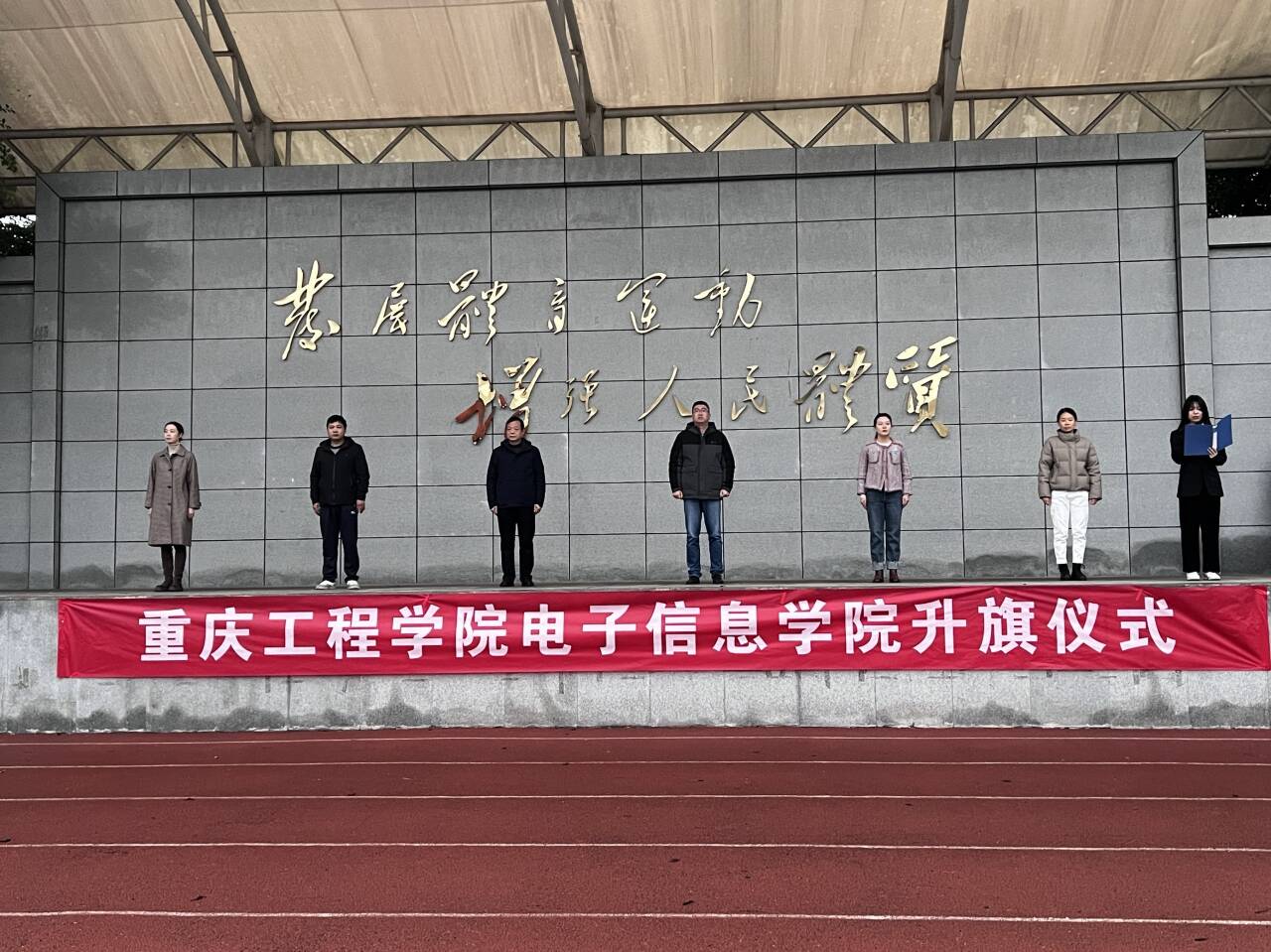 2024年11月25日清晨,电子信息学院在足球场举行2024-2025-1学期升旗仪式,学院院长何世彪教授、党总支书记谭思宇、23级思政教师兼职辅导员吴臻、分团委书记景晖祥和23级辅导员及全体学生出席本次升旗仪式。