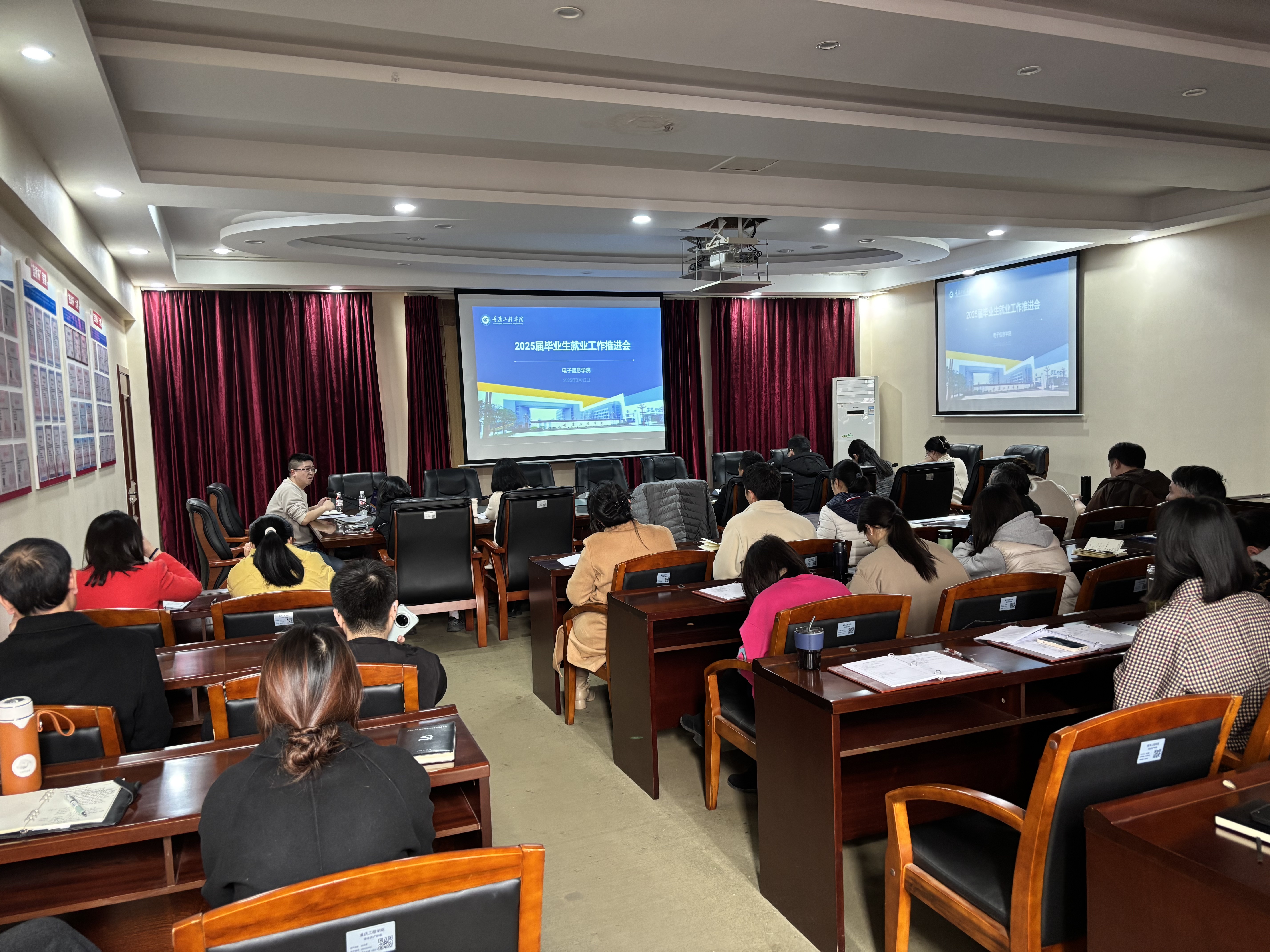为深入贯彻学校关于 2025 届毕业生就业工作的决策部署,3 月 12 日下午,电子信息学院组织召开了“2025 届毕业生就业工作推进会”。会议由学院党总支书记谭思宇主持,全体院领导、教职工参加。