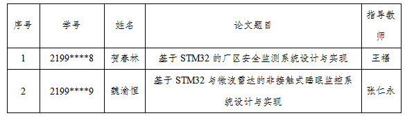电子信息学院关于2025届校级优秀毕业设计论文拟推荐名单的公示