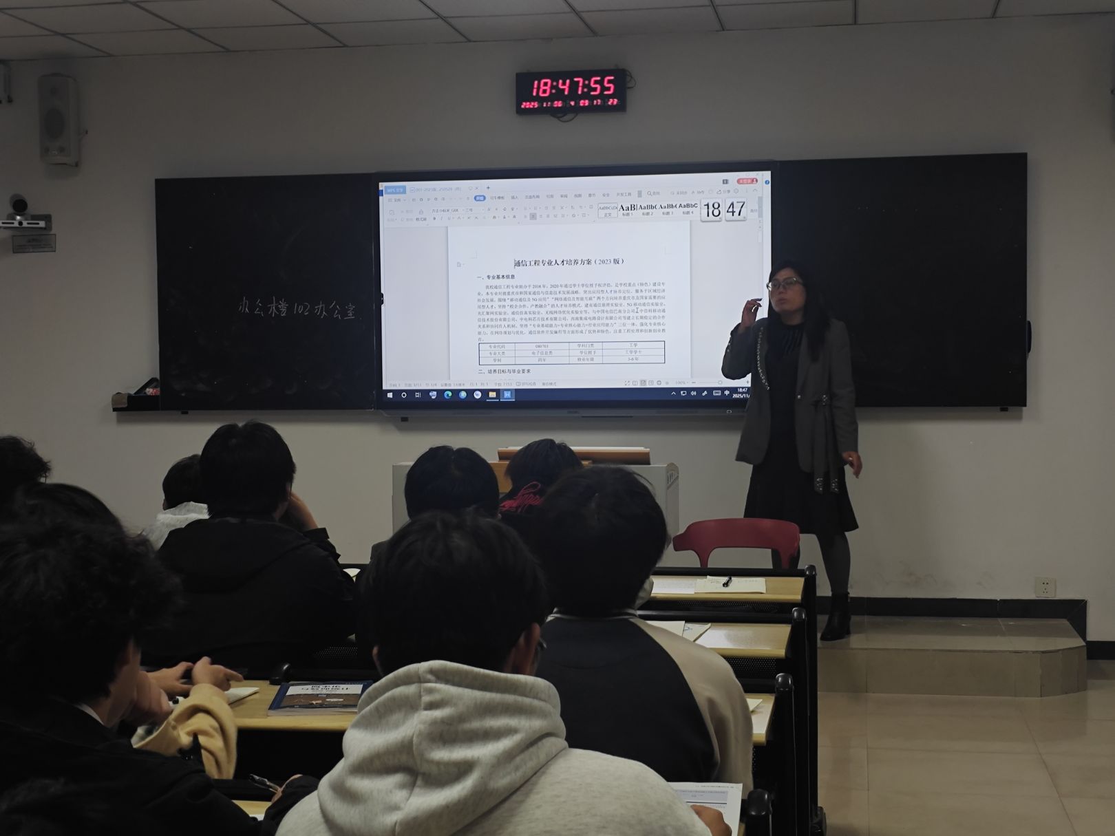 为帮助2024级通信工程专业新生全面了解本专业的培养目标、课程体系、毕业要求及发展方向,明确大学四年的学习任务与职业规划。2025年11月6日18:30,24通信2班班导师杨剑利老师在6213教室组织开展“明确学业方向,规划未来路径——通信工程专业人才培养方案解读”主题班导师活动。