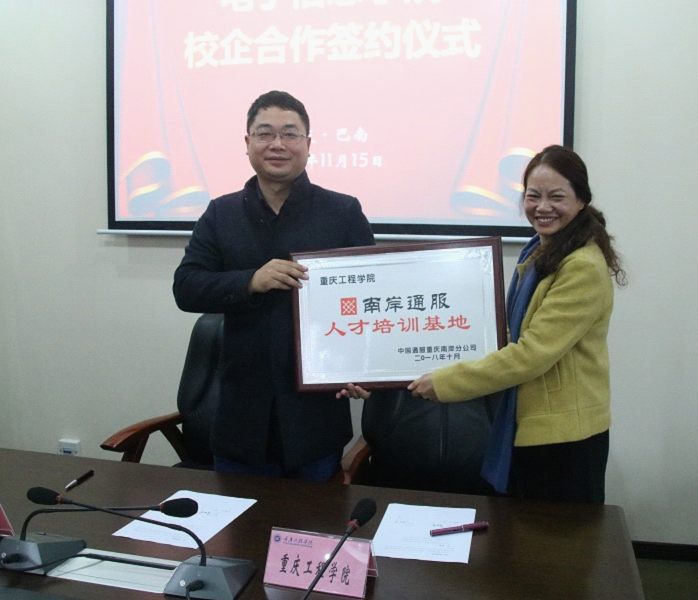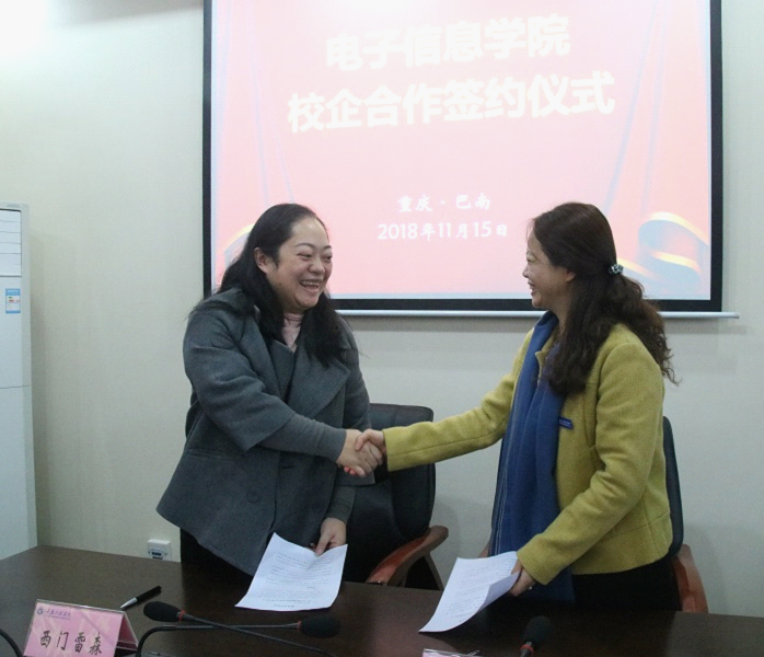 九龙坡区政协副主席陈品明、学校党委书记兼常务副校长张业平,电子信息学院相关领导、师生代表到场见证校企合作协议的集中签约。