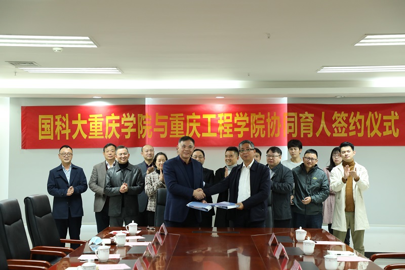11月3日,校与中国科学院大学重庆学院签订合作框架协议,签订仪式在国科大重庆学院举行。中科院重庆研究所、国科大重庆学院党委书记韦方强,重庆工程学院校长桂国庆,党委副书记兼常务副校长张业平,校长助理杨桂、简玉刚,双方二级单位相关负责人出席了签约仪式。首先,国科大重庆学院学生处处长、继续教育学院院长李向东介绍了项目的合作背景。桂国庆讲话认为,双方合作协议的签订是探索人才培养的新路径,为学生提供了更优质的学习平台,将为学生的进一步成长打下坚实的基础。重庆工程学院依托国科大重庆学院优势办学资源,有益于推动学校特色学科建设、专业建设和课程建设,有益于深化学校教学改革,有益于提高教学和学生培养质量。他要求学校相关部门进一步加强互动,及时沟通,把项目实施工作做实做细。双方共同协作,牢记“为党育人,为国育才”光荣使命,落实立德树人根本任务,为共同目标相向而行,助力学生成长成才。他预祝合作达到预期目标,并取得圆满成功。韦方强介绍了国科大重庆学院在渝与相关高校合作情况,他认为国科大重庆学院与重庆优秀特色高校合作,推动“卓越工程师班”项目建设培养卓越工程师,是国科大重庆学院落实重庆市委市政府相关要求的重要体现,将与重庆工程学院携手联动共同培养“大国工匠”。他强调合作项目要建立长效管理机制,不断改进教学体系,保证教学质量,为国家、地区培养更多合格的应用型高级人才。随后,桂国庆和韦方强分别代表重庆工程学院和国科大重庆学院签订了合作框架协议。据悉,两校将围绕重庆市以大数据智能化为引领的创新驱动发展、科教兴市和人才强市等重大战略需求,发挥双方在大数据、人工智能、软件工程、电子信息、智能制造等学科专业的资源优势,共同促进和带动相关前沿学科专业发展,科学研究、人才培养、服务社会“三位一体”齐头并进,更好服务区域经济社会发展。通过双方校校紧密合作、联合协同育人,共同达成建成“一流的学科专业”、打造“一流的教师团队”、建立“一流的教学体系”、培养“一流的技术人才”、产出“一流的科技创新成果”的合作目标。