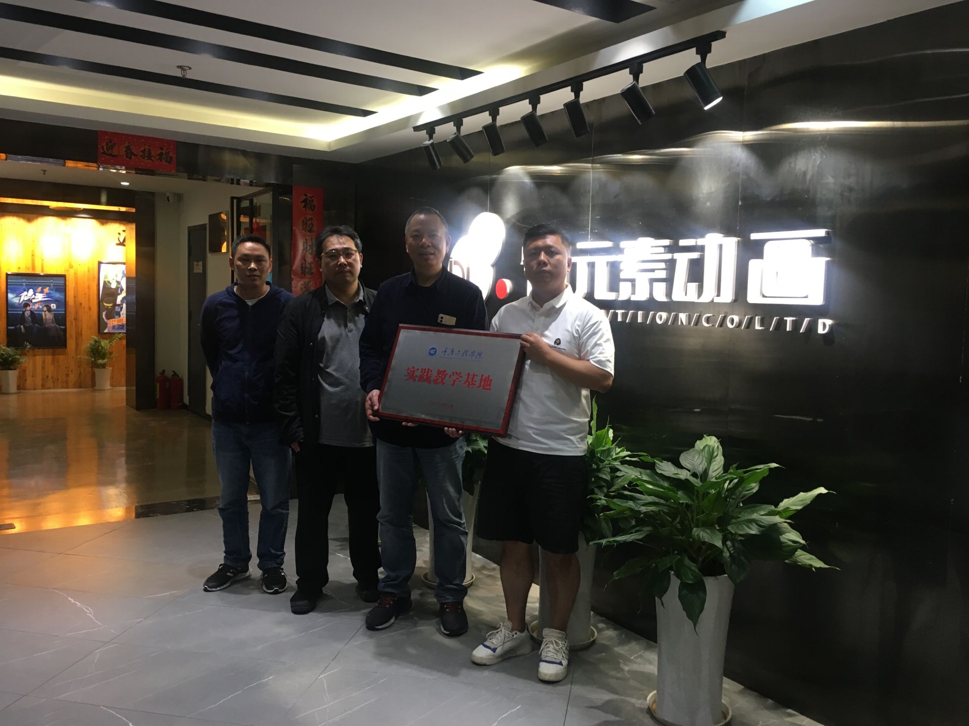 4月28日上午,数字艺术学院杨开富院长、杨飞副院长与动画系主任陈银伟一行来到动画专业校企合作优质企业重庆铅元素动画公司进行走访交流,参加校外实践教学基地授牌仪式,并与动画专业历届学生进行