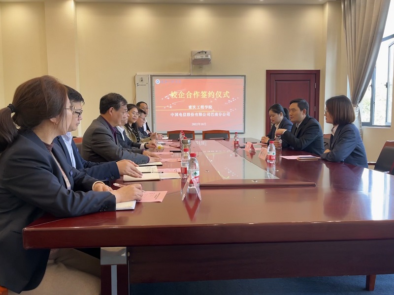 10月31日,重庆工程学院与中国电信股份有限公司巴南分公司就专业建设、共建校内外实习实训基地以及学术科研合作等事宜进一步达成深度合作共识,在行政楼第六会议室举行了校企合作协议签约仪式。中国电信股份有限公司巴南分公司副总经理郑世洪、教育运营中心总监缪桂斌、政企客户经理彭雪,学校党委副书记、常务副校长张业平,教务处处长杨倩,网络信息中心主任皮小军,电子信息学院院长何世彪,评建办许欢欢,校企合作办公室宁俊龙出席签约仪式,签约仪式由电子信息学院副院长陈成瑞主持。签约会上,何世彪首先致欢迎辞,他感谢中国电信巴南分公司长期以来对电子信息学院人才培养工作的大力支持,并对双方未来就加强人员交流、建设参观见习基地、在校内建设实践教学基地、开展应用技术研究等四个方面的工作提出了建议。郑世洪逐条回应了何世彪的建议,他非常感谢学校对中国电信巴南分公司的大力支持,双方的合作充分体现了互利共赢的合作理念,中国电信巴南分公司将继续支持双方拓展合作领域,深化合作内容,围绕信息技术发展新趋势新业态,全面推动双方合作取得更多成果。张业平在发言中强调,重庆工程学院在快速发展的过程中,将更加注重发展质量,更加强化“校企合作、产教融合”的人才培养模式,双方有着坚实的合作基础,要继续拓展合作范围,在人才培养、校内外实践教学基地建设以及科研学术方面开创校企合作新局面,提出了重庆工程学院与中国电信巴南分公司具体合作的路线图,要求相关部门协同谋划、积极推动落实,努力将双方的合作做成校企协同育人的典型示范。