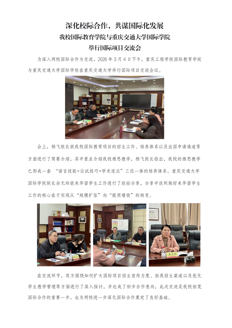 深化校际合作,共谋国际化发展 我校国际教育学院与重庆交通大学国际学院举行国际项目交流会