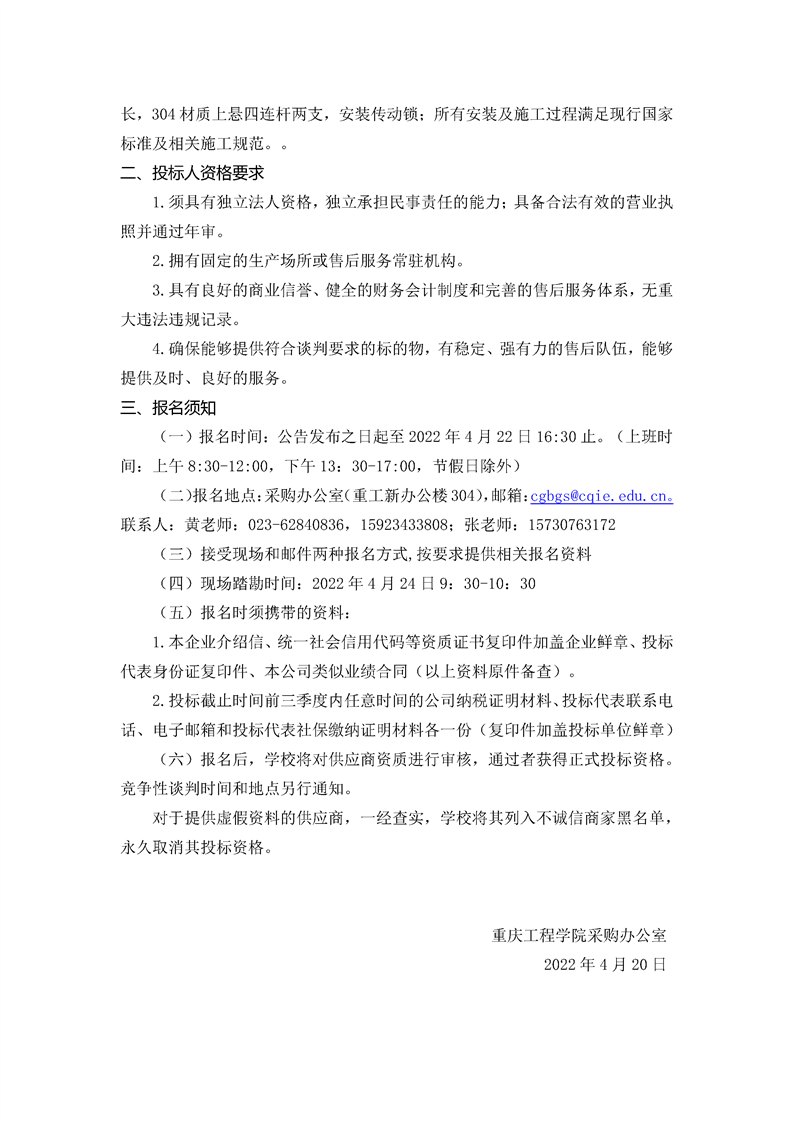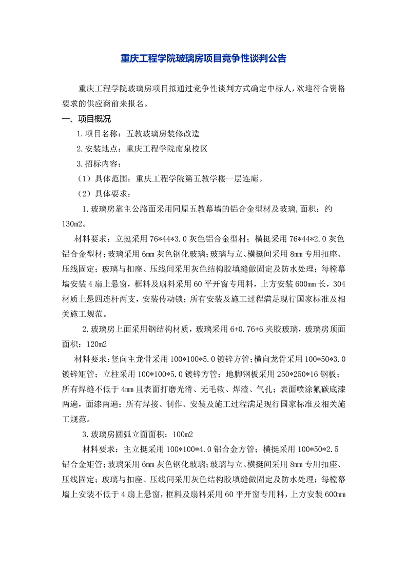 重庆工程学院五教玻璃房项目竞争性谈判公告