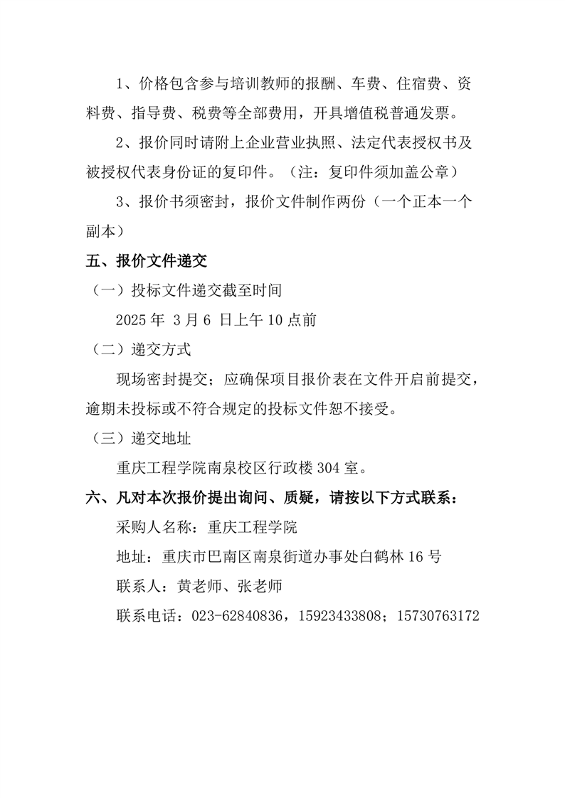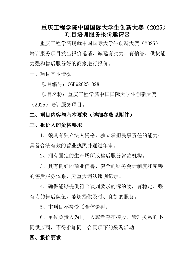 重庆工程学院中国国际大学生创新大赛(2025)项目培训服务报价邀请函