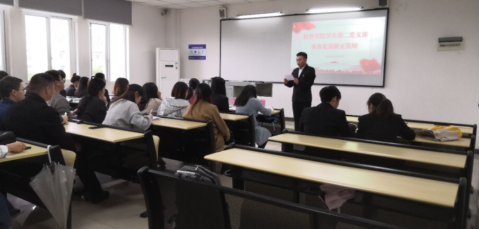 为提高大学生党员发展质量,充分发挥党员群众的监督、评议作用,增强学生党员的党员意识。2020年10月12日14:00,软件学院学生第二党支部在6327教室开展预备党员转正答辩汇报活动。软件学院学生党支部3名教师党员、20余名在校预备党员参加了本次活动。