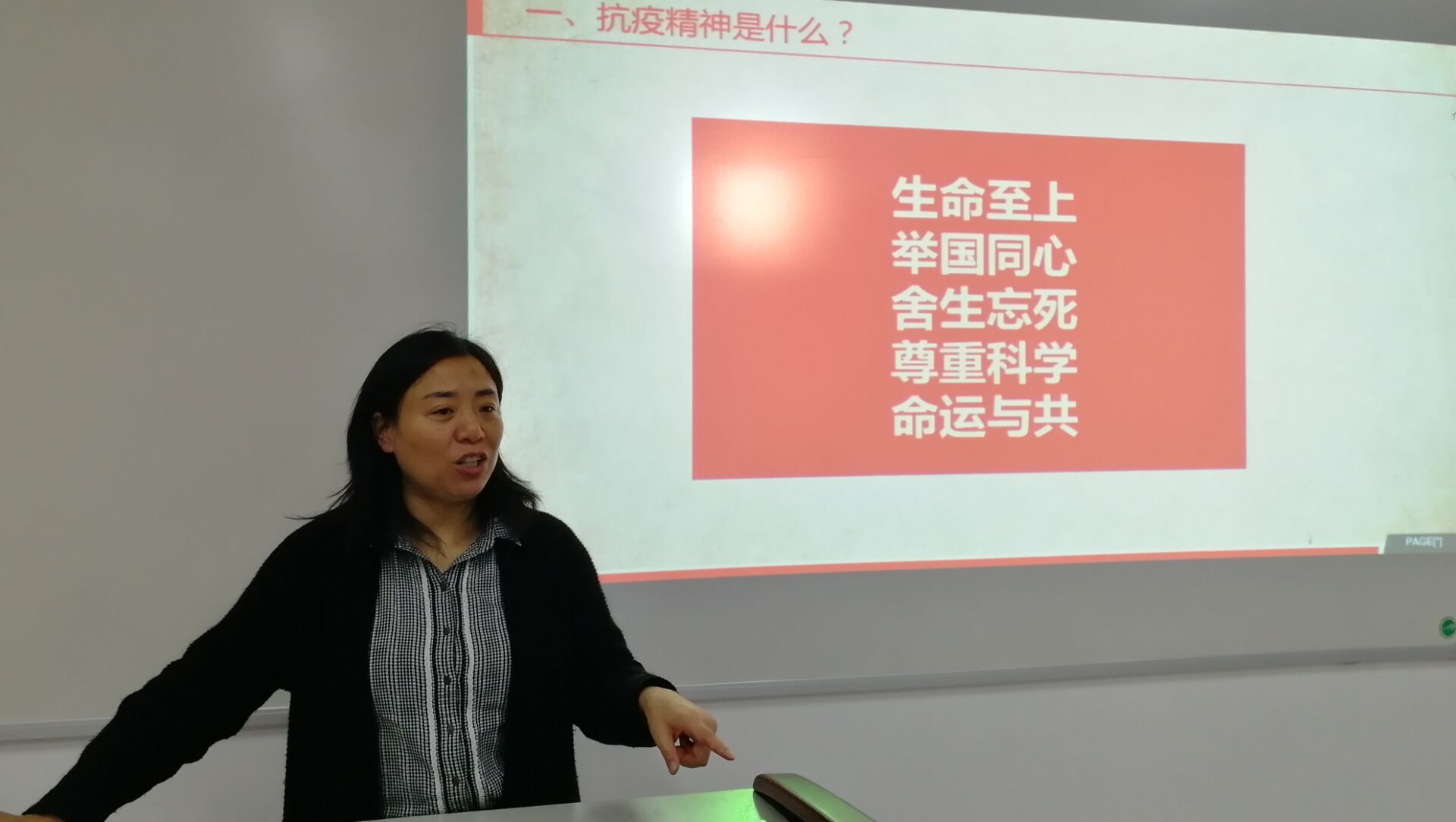讲课中,徐书记与教师党员们一起,从“抗疫精神是什么?”、“为什么要强调初心和使命?”、“如何才能永葆初心和勇担使命?”三个方面,共同学习了抗疫精神的内涵,分析了党和国家能够迅速有效控制疫情的原因,并从广大党员干部在此次抗疫斗争中的突出表现和核心作用,联系到教师党员们自己,引导大家深入思考如何在岗位上弘扬抗疫精神, 坚守初心使命,做好教书育人工作。