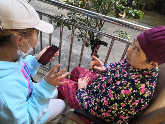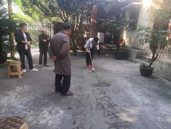 志愿者们到达养老院就积极地向爷爷奶奶们问好,活动也在这一声声问候中开展起来。志愿者们都用自己的方式传递着爱心。有的和爷爷们一起探讨书法,用毛笔沾水在地上写字;有的陪爷爷奶奶唱歌;有的给老人捶腿。一个简单的拥抱,一个轻轻的搀扶,都让爷爷奶奶们热泪盈眶。老人们对物质并没有过高的追求,更需要的就是晚辈的陪伴。