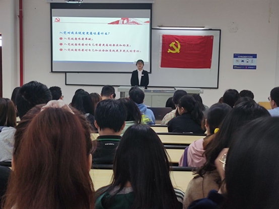 会议由学生党员实践教育中心干事王浩舟同志主持,学院党总支书记覃华伟、学生第一党支部书记雷宇、学生第一党支部组织委员韩梦杰、学生第二党支部书记张景冬、辅导员黄浩茹及学院党性分子参与此次会议。