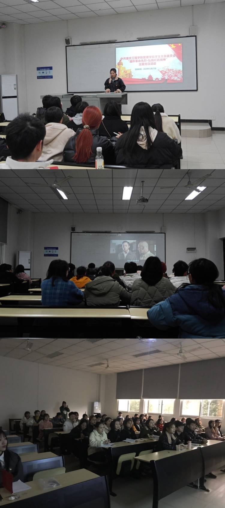 11.27是一个特殊的日子。管理学院学生党支部组织部分学生党员和发展对象、积极分子开展“11.27”重庆大屠杀缅怀活动。通过同学们对部分牺牲的革命先烈故事分享,缅怀在此次大屠杀中牺牲的321名遇难者;通过观看电影《大轰炸》重温历史,再次坚定共产党人坚定的信念,再一次感受信仰的无穷力量!