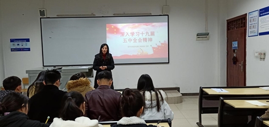 为深入学习贯彻党的十九届五中全会精神,加强对党员的思想政治教育,激发党员同志们的奋进力量。2020年12月16日18:30,软件学院学生第三党支部书记王芳老师在6121教室以“深入学习十九届五中全会精神”为主题讲了一堂生动的党课,本次党课共18名同志参加。