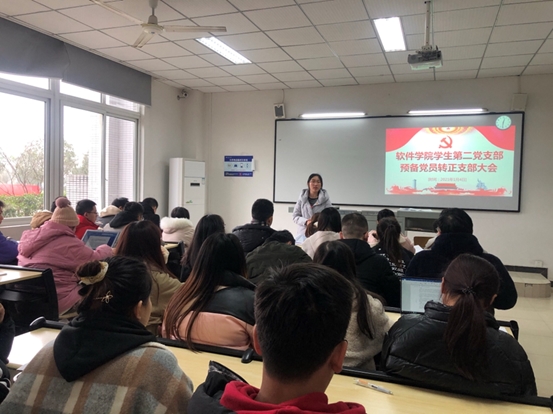 2021年1月4日12:00,软件学院学生第二党支部在6118教室举行了预备党员转正大会,一共54名支部成员参加本次会议。