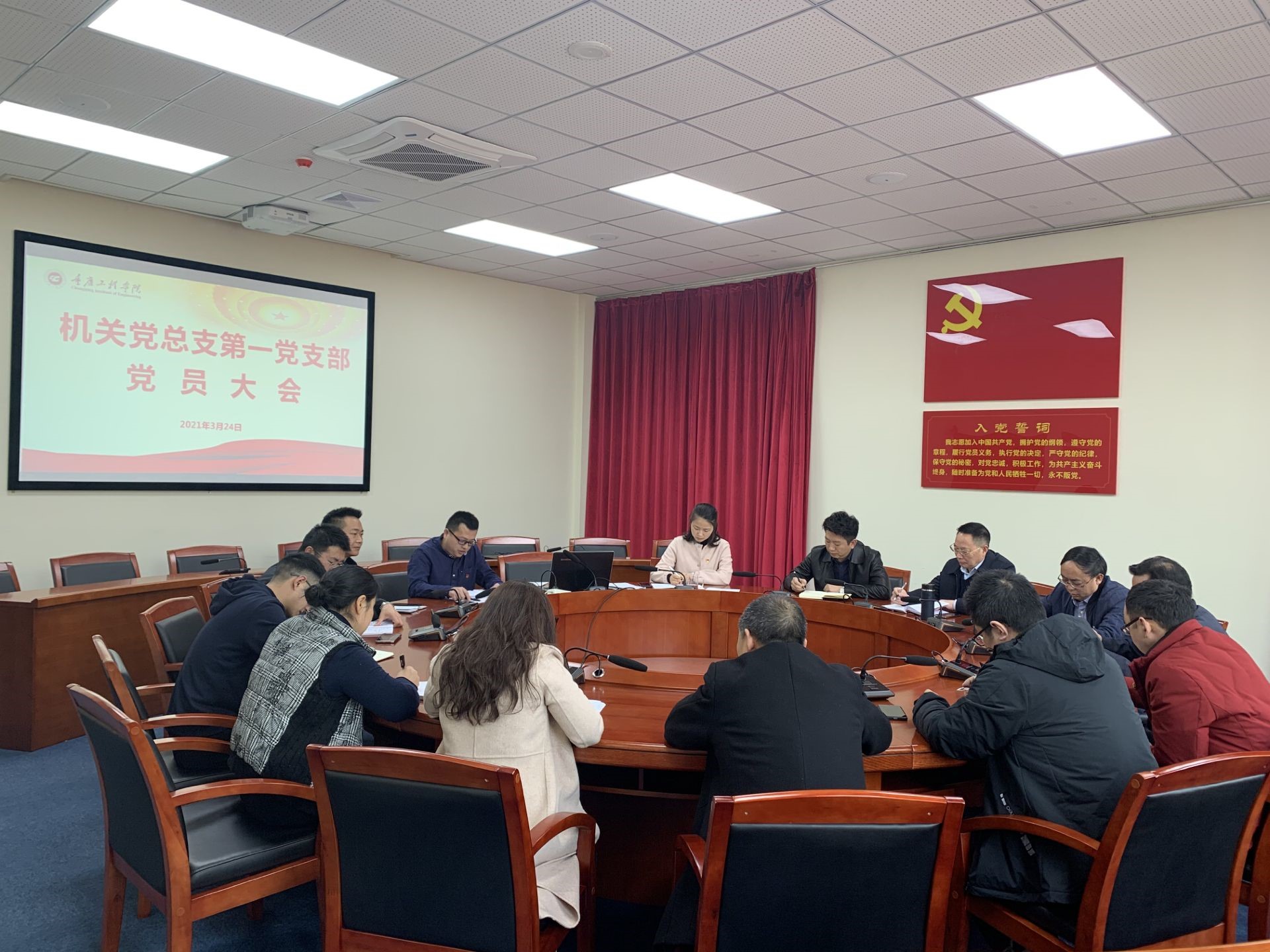 2021年3月24日下午,机关党总支第一党支部在学校办公楼第三会议室召开了“三讲、三进”和“三讲、三比”党员大会,会议由支部书记姜庆洲同志主持,机关第一党支部全体党员参加。