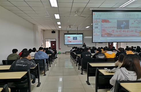 为贯彻落实习近平新时代中国特色社会主义思想,认真学习贯彻习近平总书记重要讲话精神和关于志愿服务的重要指示精神,坚持培育和践行社会主义核心价值观,大力弘扬“奉献、友爱、互助、进步”的志愿精神,推进学雷锋志愿服务制度化,强化社会责任意识、规则意识、奉献意识。电子信息学院学生党支部决定于2021年3月25日中午在第六教学楼201教室开展“学雷锋,促新风,见行动”主题党日活动。本次主题党日活动由谭珊珊同学主持,电子信息学院在校学生党员、预备党员、发展对象以及部分入党积极分子参与其中。