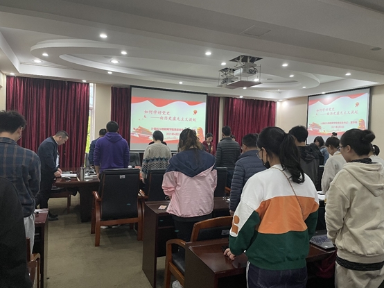 为全面贯彻落实习近平总书记在党史学习教育动员大会上的讲话精神,把党史学习教育这堂“必修课”修好,扎扎实实抓好全院师生党员党史学习教育,计算机与物联网学院于2021年4月2日下午,在第七会议室开展了“如何学好党史——从历史虚无主义谈起”为主题的党课学习。党课由党总支书记覃华伟同志主持,参会人员包括全院教师党员与学生党员。