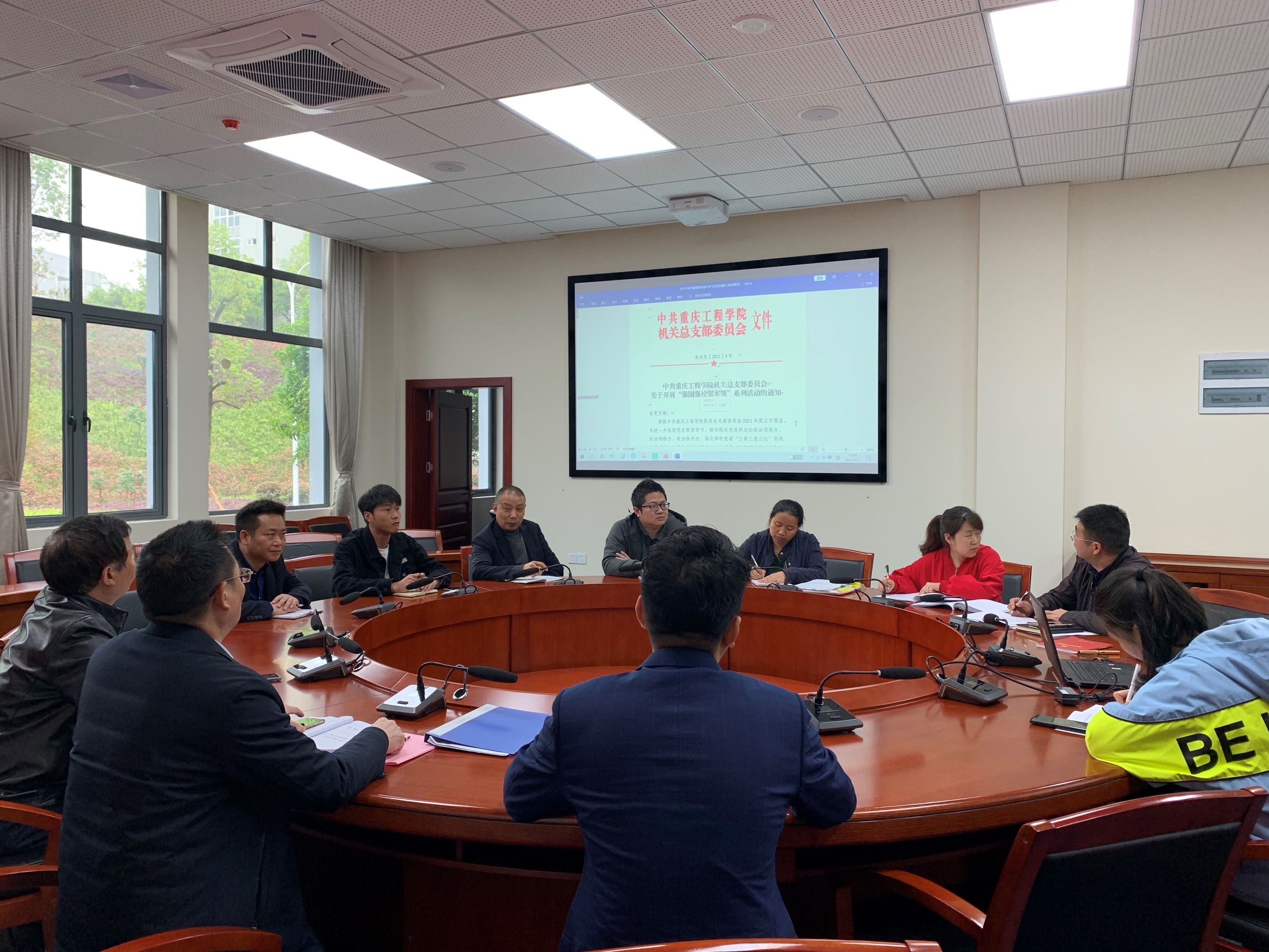 2021年4月7日下午,机关党总支第一党支部在学校办公楼第三会议室召开党员大会。本次大会对“强国强校强本领”主题活动进行宣传动员,会议由机关党总支书记邹均同志主持。
