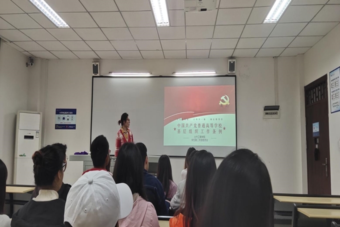 为加强和改进党对普通高等学校的领导和建设,办好中国特色社会主义大学,为高等教育事业的科学发展提供思想保证、政治保证和组织保证。土木工程学院学生第二党支部于2021年5月6日15:50—16:30在第六教学楼220教室组织学习《中国共产党普通高等学校基层组织工作条例》,由窦晖书记带领同志们学习,土木工程学院学生第二党支部全体(预备)党员参与学习。