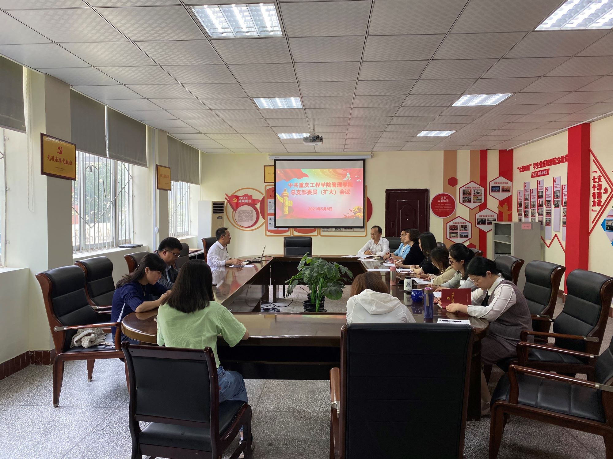 2021年5月8日下午,管理学院在3教101教室召开了总支部委员(扩大)会议。本次会议由党总支书记刘达斌同志主持,党总支委员、党支部委员参与。