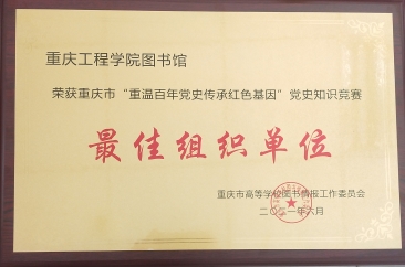 6月22日,由重庆市教育委员会高等教育处指导,重庆市高等学校图书情报工作委员会主办,重庆市高校图工委新媒体专业委员会、重庆市各高校图书馆承办,中科软股教育科技(北京)股份有限公司承办的重庆市“重温百年党史传承红色基因”党史知识竞赛决赛落下帷幕,我校图书馆因在赛事组织过程中表现优异被组委会授予“优秀组织单位”奖项,位列全市高校第一名,阅读推广部唐时勇老师被授予“优秀指导老师”荣誉称号。