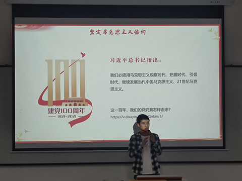 竞赛内容涵盖中国共产党发展历程、党的相关会议和重大事件、党章规定和党的相关论述,设有填空题、选择题、简答题三种题型,分为必答、抢答、综合阐述共三个环节,同学们均经过了认真准备,热情高扬,回答游刃有余。大家认为,本次活动既增加了交流,又普及了党的相关知识,提升了政治理论水平。竞赛中,学生党员段江龙同志有感而发,围绕最近热映的《长津湖》,回顾了抗美援朝的艰苦历程,鼓励大家赓续红色血脉、弘扬伟大建党精神,争做新时代弄潮儿。