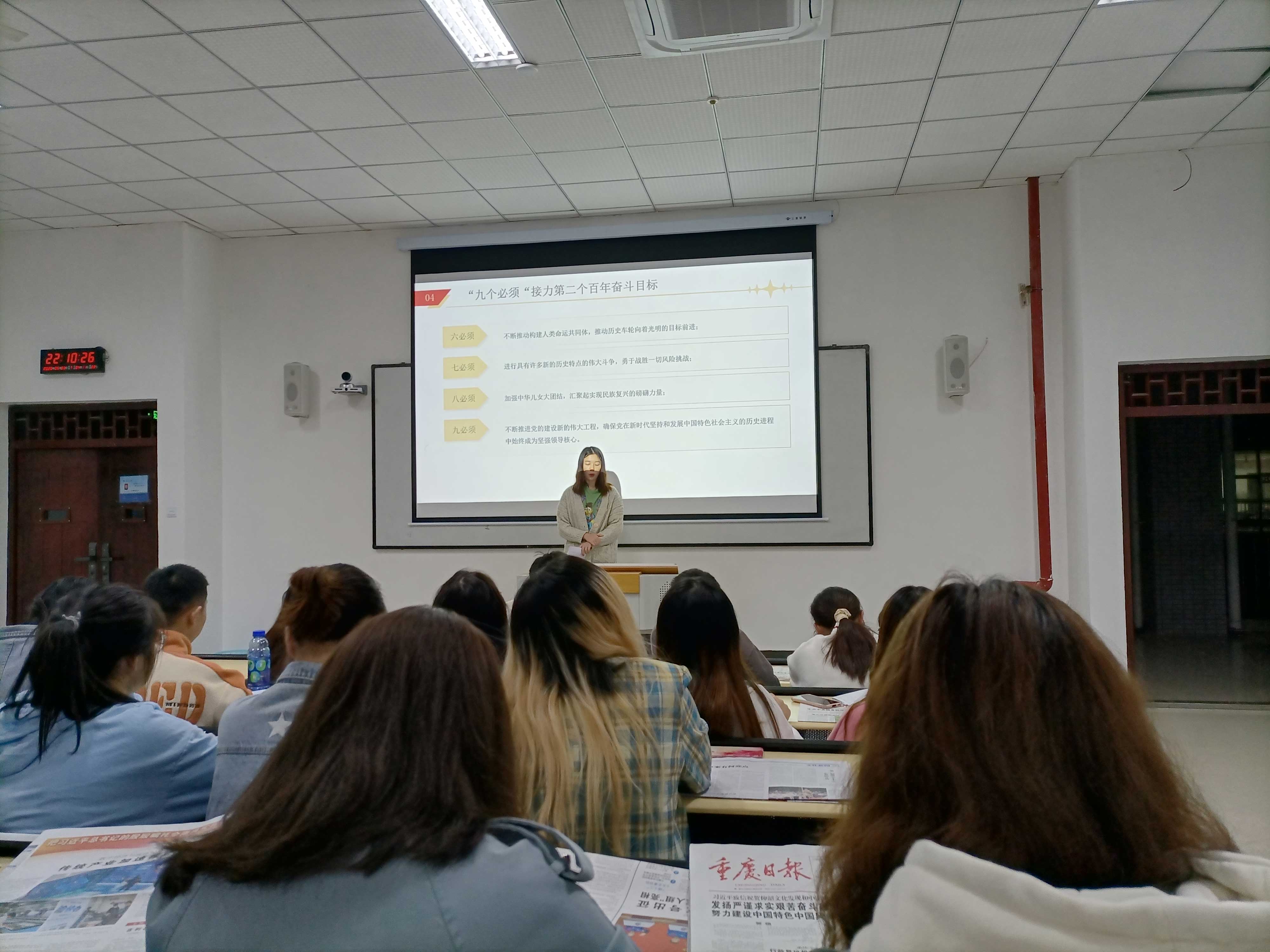 秉承先驱遗志,共筑复兴伟业。为深入学习习总书记在纪念辛亥革命110周年大会上的重要讲话、学习新中国史,引领广大青年学生树立爱国主义精神,进一步提高“知史明鉴”的能力,管理学院学生党支部于2021年10月25日在6204教室开展了“纪念辛亥革命110周年、学习新中国史”主题教育活动。此次活动由管理学院学生党员实践教育中心办公室干事田甜主持,共有管理学院各学生党支部50余名同学参加。