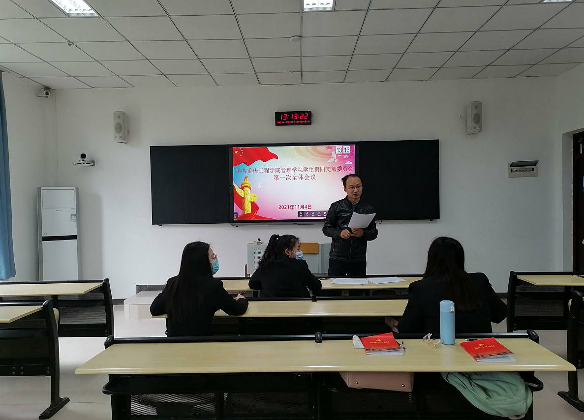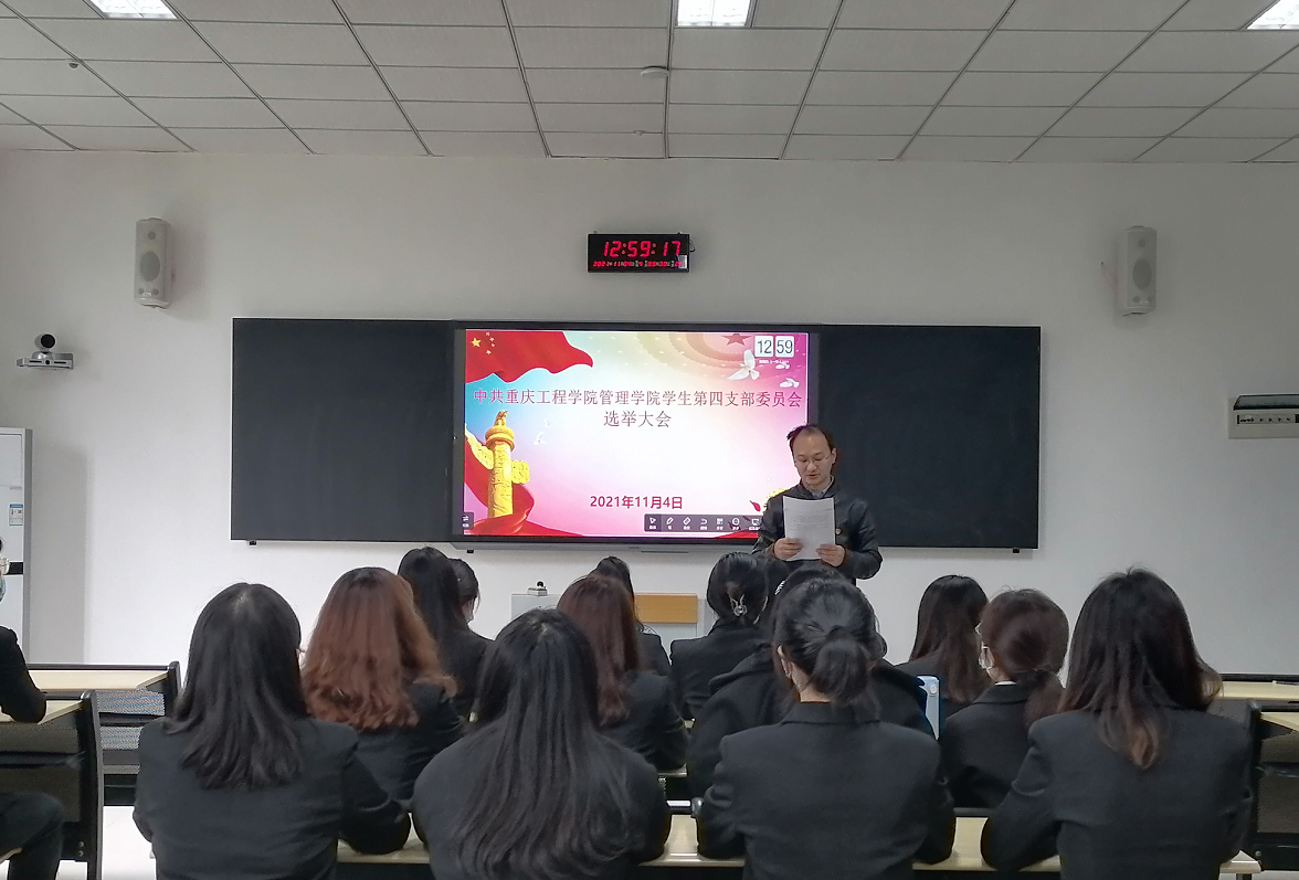 2021年11月4日下午,管理学院学生第四党支部在6教112教室召开了选举大会。会议由王燕楠同志主持,支部正式党员、预备党员参加了会议。
