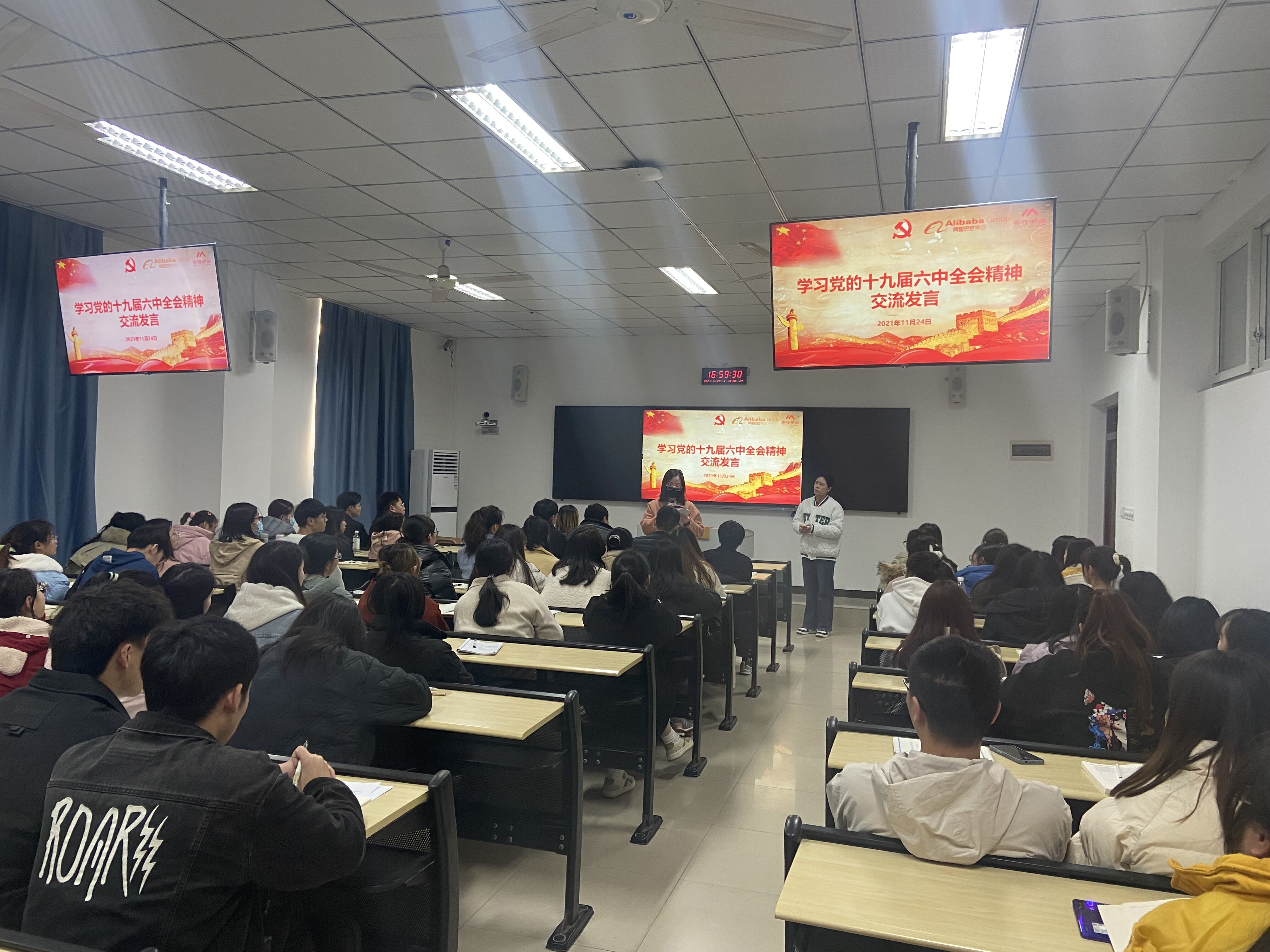为深入学习贯彻党的十九届六中全会精神, 2021年11月24日下午,阿里巴巴CCO事业部·重庆工程学院管理学院联合党支部在6115教室开展了“薪火青年说”第三期活动。本期活动邀请到的薪火人是管理学院党总支书记刘达斌,薪火青年是2018级学生正式党员代路遥、2019级学生预备党员杨雪,此次活动共计100余名同志参加。