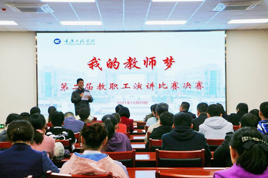 为进一步牢记“立德树人”初心、“为党育人、为国育才”使命,充分展现新时代重工教师“有理想信念、有道德情操、有扎实学识、有仁爱之心”四有好老师形象, 10月20日下午,我校在办公楼201第四会议室举办了第二届“我的教师梦”教职工演讲比赛决赛。此次大赛由重庆工程学院主办,学校工会承办。副校长王琼花、纪委书记兼工会主席唐小勇、校长助理王建东、以及各二级学院分工会主席出席了活动。教师、学生代表共百余人到场观看比赛。