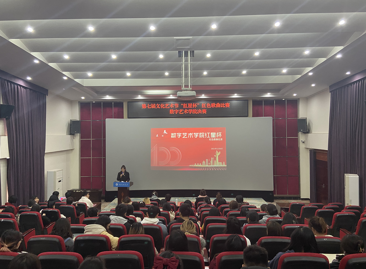 一首红歌是一段峥嵘岁月;一首红歌象征一面光辉旗帜。为隆重庆祝中国共产党建立100周年,进一步提高大学生党员的思想修养,根据年度主题教育安排,2021年12月6日,数字艺术学院学生党支部在阶梯报告厅举办学院“红星杯”红色歌曲大赛决赛。学院专职组织员周思琦、支部书记李欧伦、张雪银、组织委员杨道珍、覃薇及60余名学生参与了本次活动。