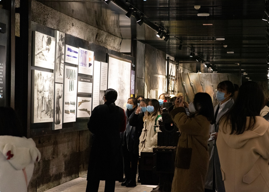 为进一步推动党史学习教育走深走实, 2021年12月9日下午,数字艺术学院全体学生党员前往了位于九龙坡区鹅公岩大桥下的重庆建川博物馆开展“学习光荣历史,赓续红色血脉”主题党日活动。