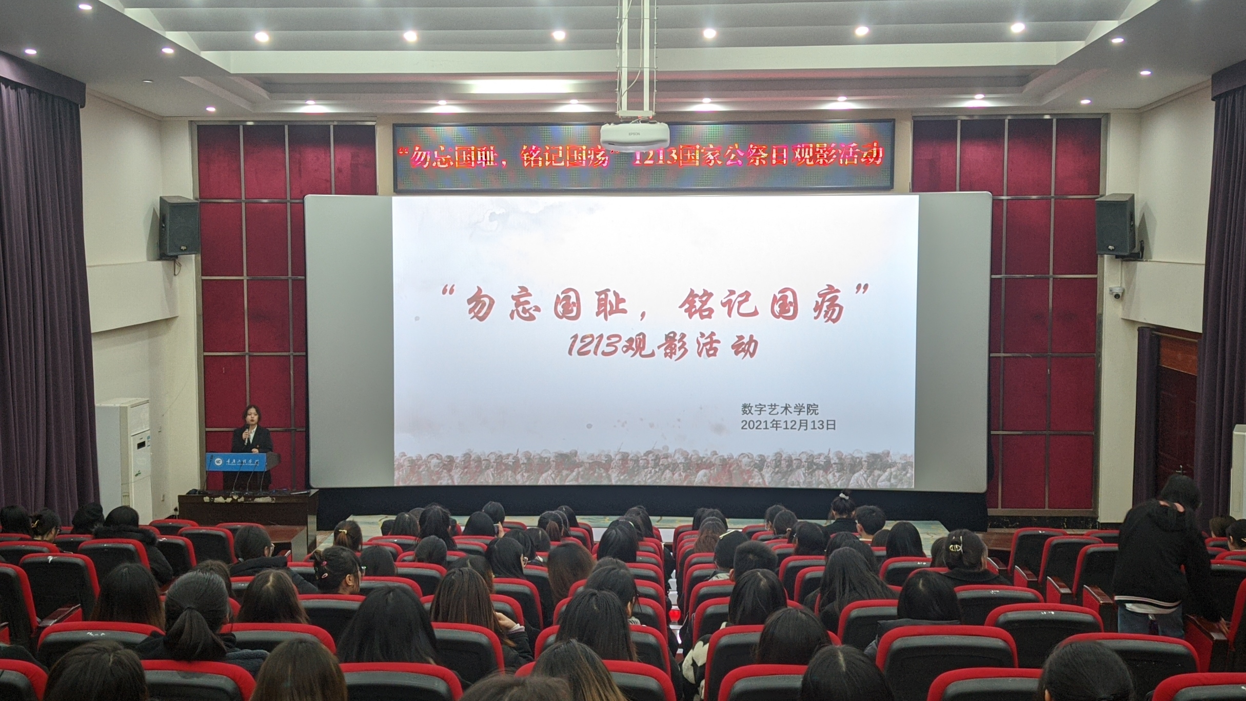 2021年12月13日下午,数字艺术学院学生党员实践教育中心在阶梯报告厅开展了“勿忘国耻,铭记国疡”国家公祭日观影活动。本次活动由学院专职组织员周思琦组织,共有180余名同学参加。
