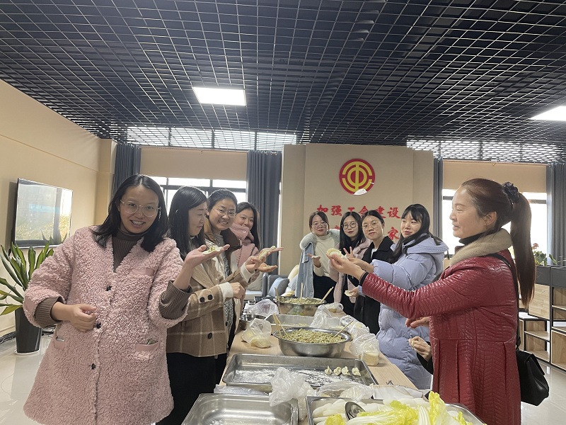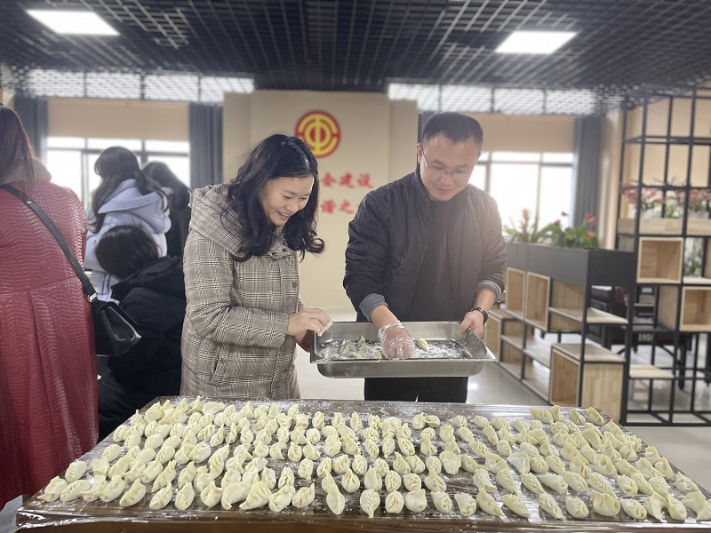 走进工会活动室,一种家的温馨扑面而来。有的正在聚精会神的观看《建党伟业》,共同回忆党史;有的围坐在沙发上畅谈教书育人初心和育人理念;有的在精心调制饺子馅、擀饺子皮,包出的饺子有月牙饺,有大肚饺,形态不一。一小时后几百个饺子便错落有致的摆放在托盘上,等待下锅,等待冬至节日里那股最熟悉的家常味儿。