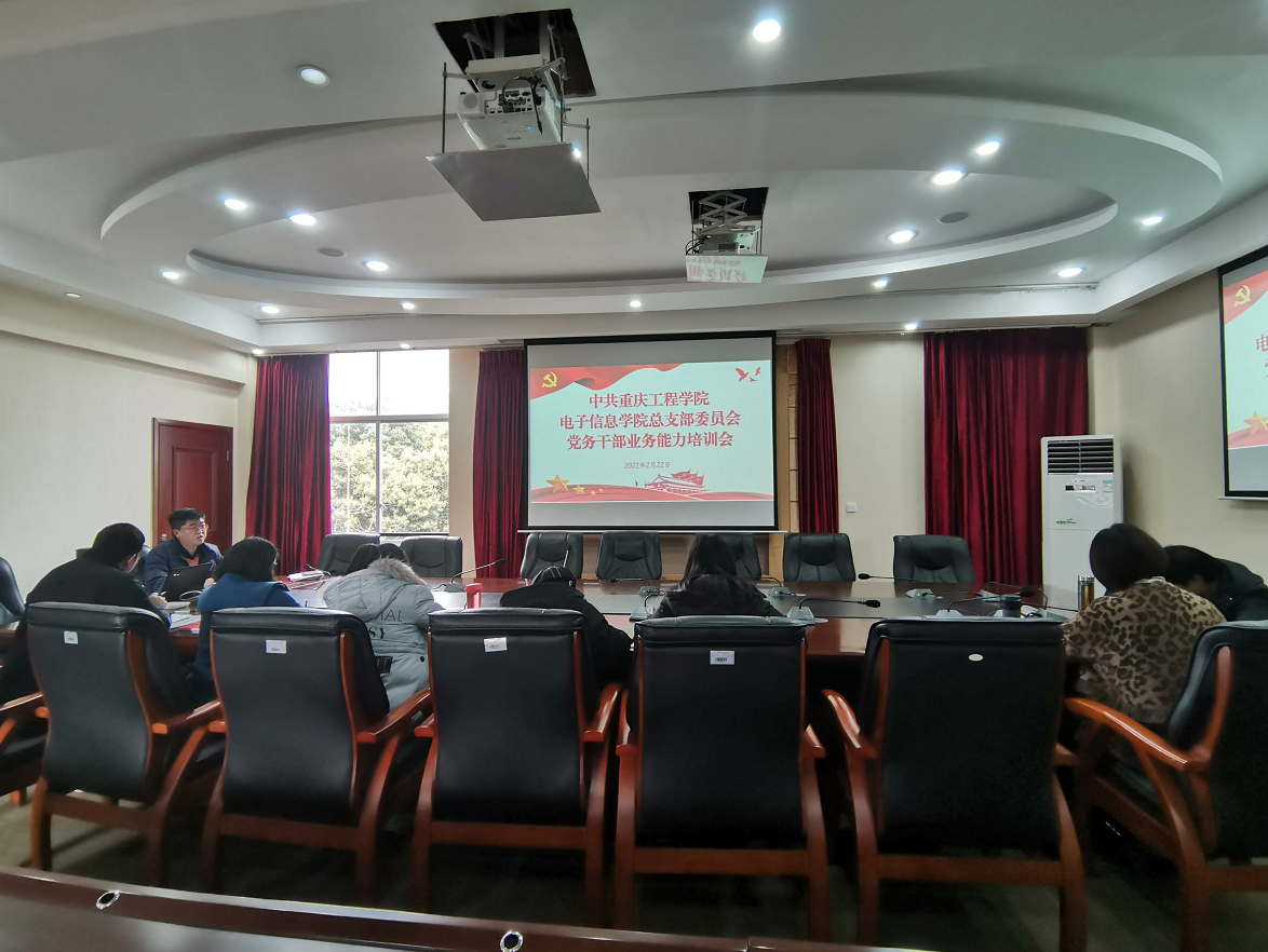 2022年2月22日,电子信息学院党总支在第七会议室召开党务干部业务能力培训会,会议由党总支书记谭思宇同志主持,教师党支部、学生第一党支部、学生第二党支部全体委员共计11人参加。