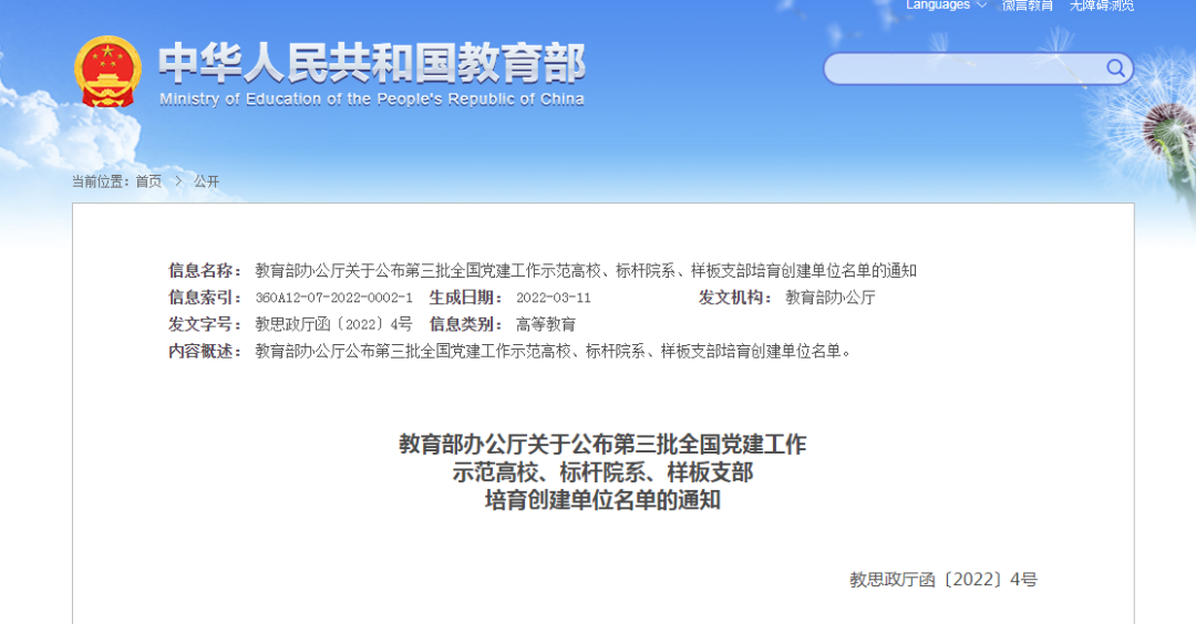 据了解,本次示范创建和质量创优工作受到了全国高校的高度重视和广泛参与,教育部经过组织推荐、专家通讯评审、教育部党建工作领导小组成员单位集中审议最终公布了创建单位名单。