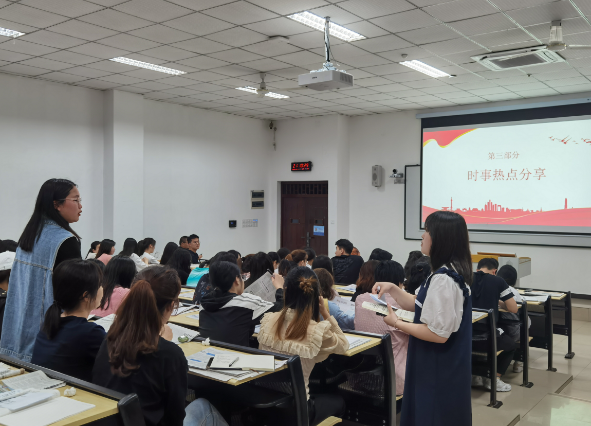 活动伊始,学生第三党支部的马承文同学以“致敬挺身而出的普通人”为题,围绕逆行者、人民英雄等关键词,讲述了挺身而出的普通人的故事。在火场中为营救被困群众而不幸英勇牺牲的消防员欧保尔、韦吉德,将青春的身影定格成了冲锋的姿态;在“8·12天津滨海新区爆炸事故”中全部壮烈牺牲的天津港消防支队五大队,将他们的生命定格在了漫天火光中。还有永不坠落的扶贫志吴国良、冲锋陷阵的“瘦弱将军”肖云峰、“一封群众的请愿书”高克强......他们在平凡的岗位上铸就了生命的精彩华章,擦亮了道德星空,树起了时代标杆,挺直了民族脊梁。时政热点分享环节,同学们各抒己见,积极参与到讨论当中。跪地做心肺复苏连救3人的重庆女医生,让同学们感受到了英雄不过是普通人的挺身而出。“动态清零”总方针,让同学们明白了疫情形势依然严峻复杂,遵守防疫抗疫要求是每一个人的义务与责任。
