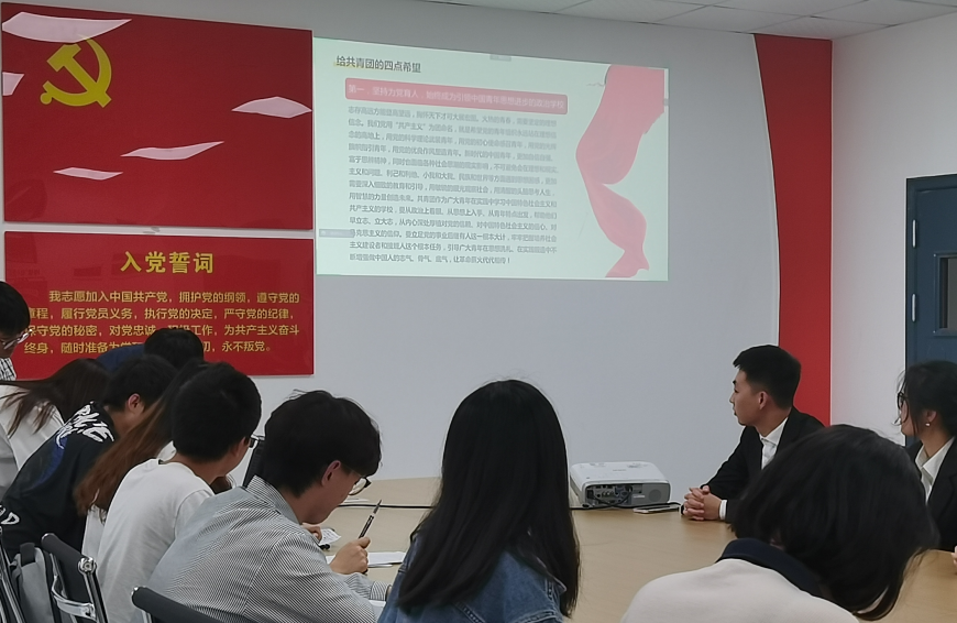 之后,蔡丽同志领学了习近平同志在“庆祝中国共产主义青年团成立100周年大会”上的重要讲话精神,并与线上参会的同志进行了学习互动。最后,支部成员向着党旗重温了入党誓词。