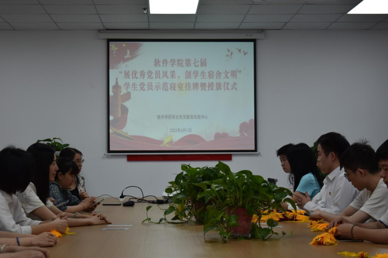 本网讯(文/徐高峰 图/孙必洪)为进一步发挥学生党员的带头模范作用,软件学院学生党员实践教育中心于6月1日开展学生党员示范寝室授旗活动。学院党总支书记刘子菱、各学生党支部书记以及各学生党员示范寝室代表参加了本次活动。