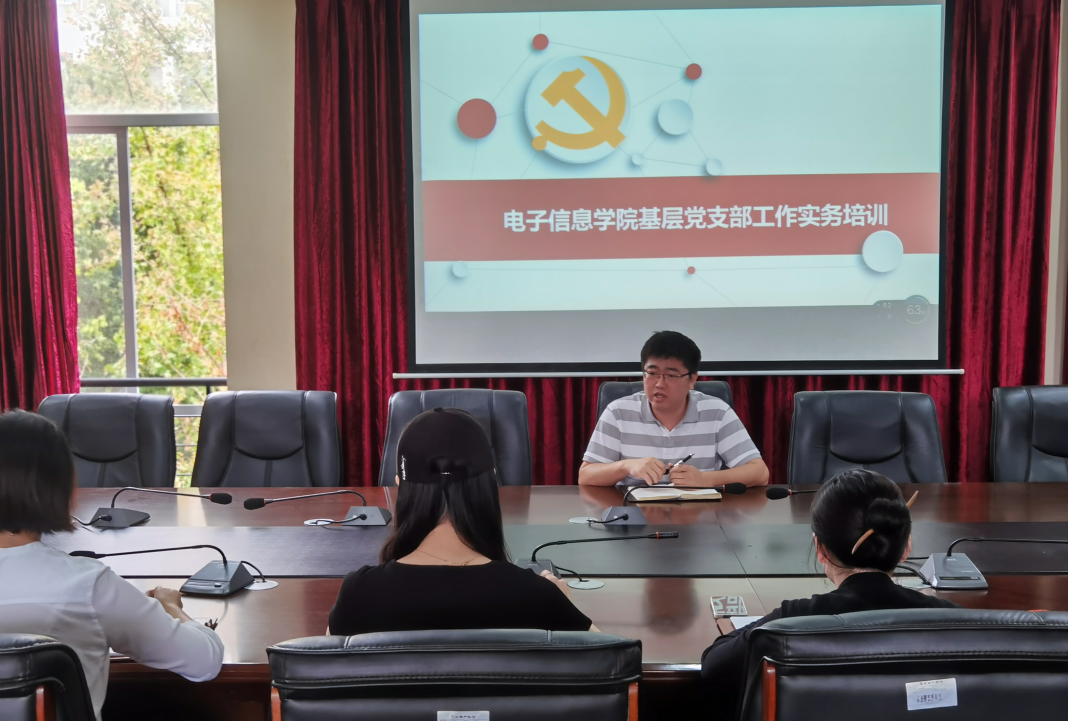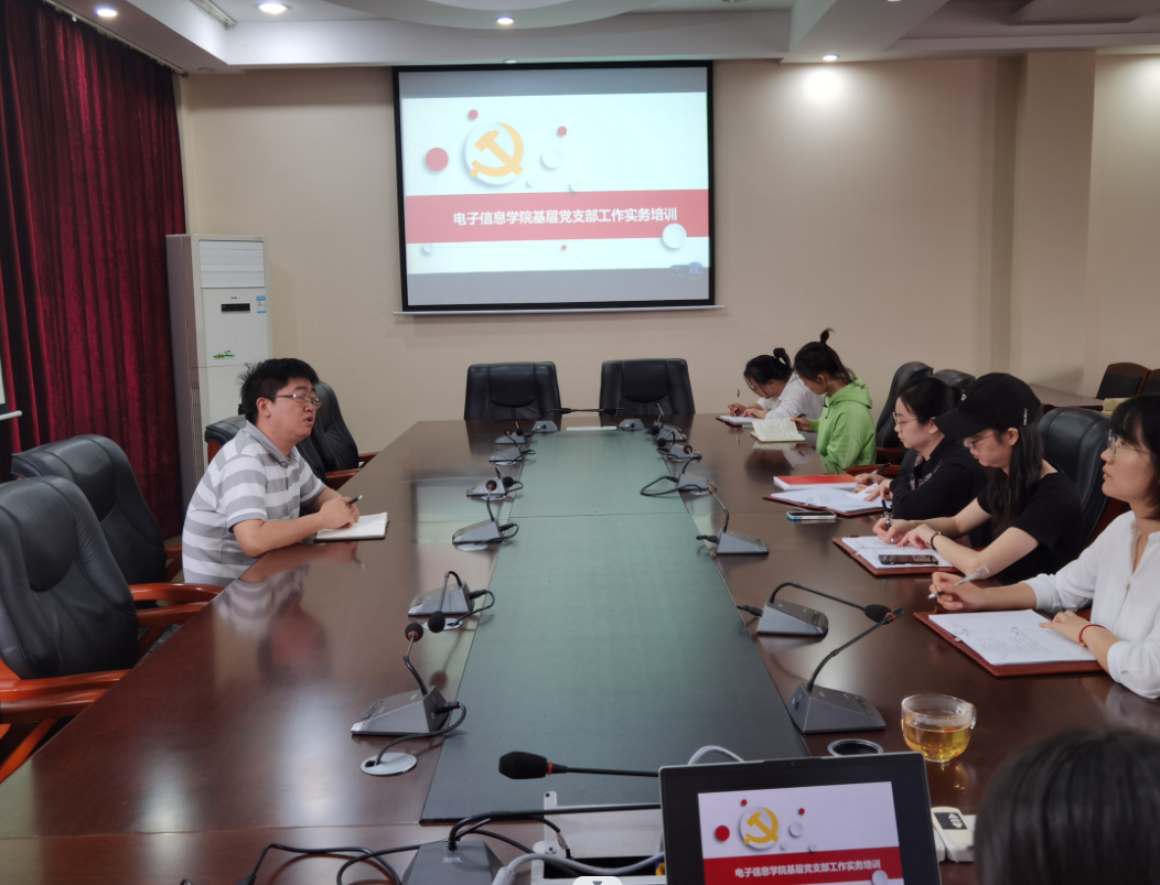 2022年9月22日,电子信息学院党总支在第七会议室召开党务干部业务能力培训会,会议由党总支书记谭思宇同志主持,学生第一党支部、学生第二党支部全体支委会委员参加。