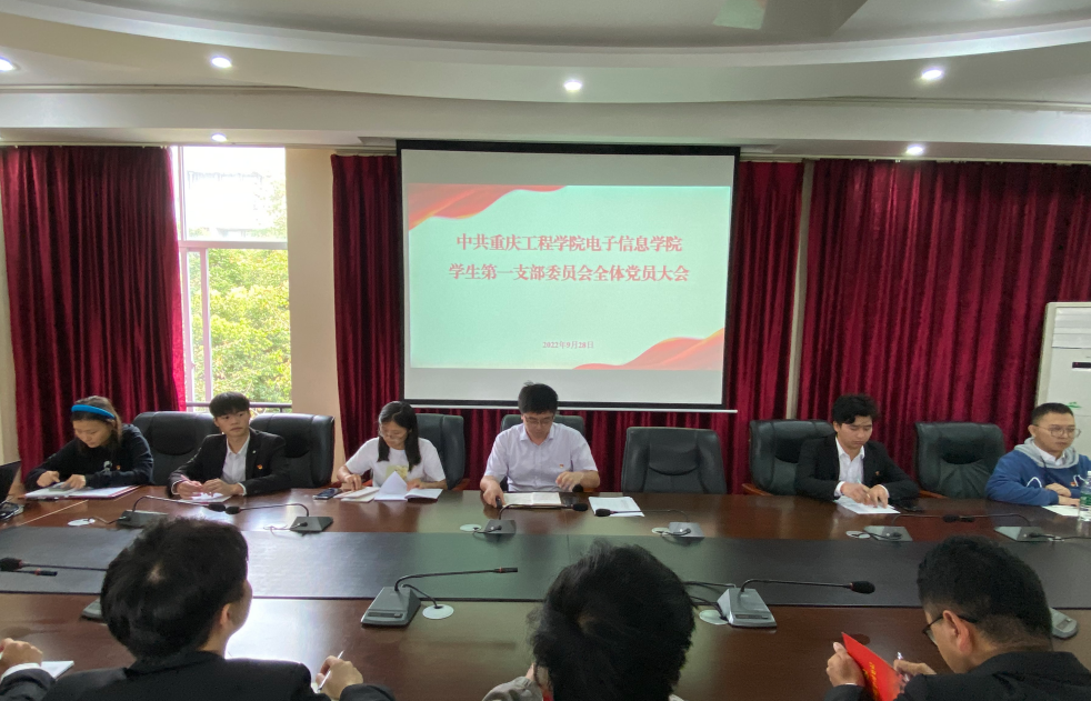 9月28日,电子信息学院学生第一党支部在第七会议室召开党员大会,学院党总支书记谭思宇同志及支部全体正式党员、预备党员共计24人参加会议。