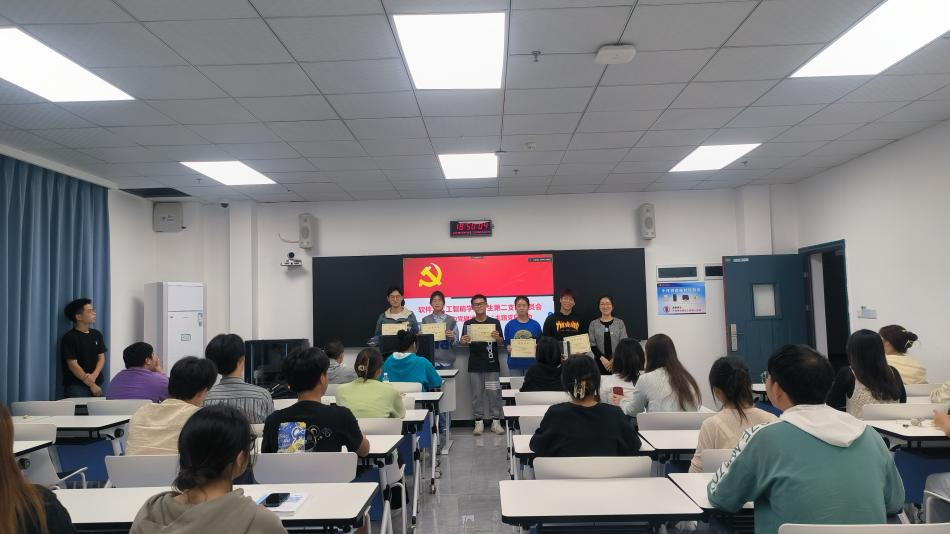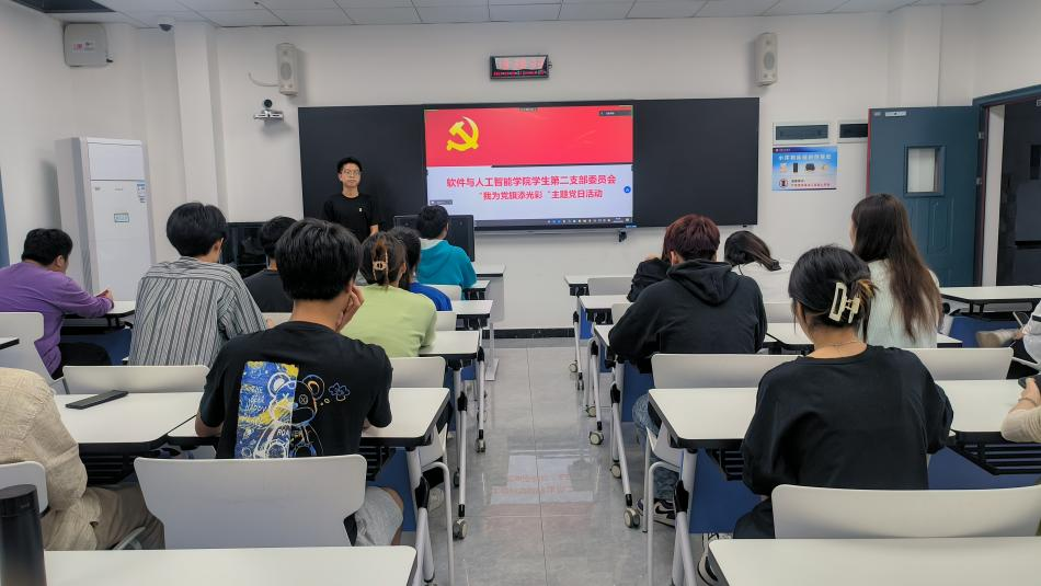 (文/图 软件与人工智能学院 胡才静)为增强广大共产党员的使命感和责任感,以党员争优秀带动身边群众争优秀,使创先争优向模范学习成为全体党员的价值取向和共同追求,软件与人工智能学院学生第二党支部于9月28日在7208教室开展了“创先争优,我为党旗添光彩”专题党日活动。支部全体支部党员、发展对象和入党积极分子共76人参加,其中积极分子通过线上形式参加活动。
