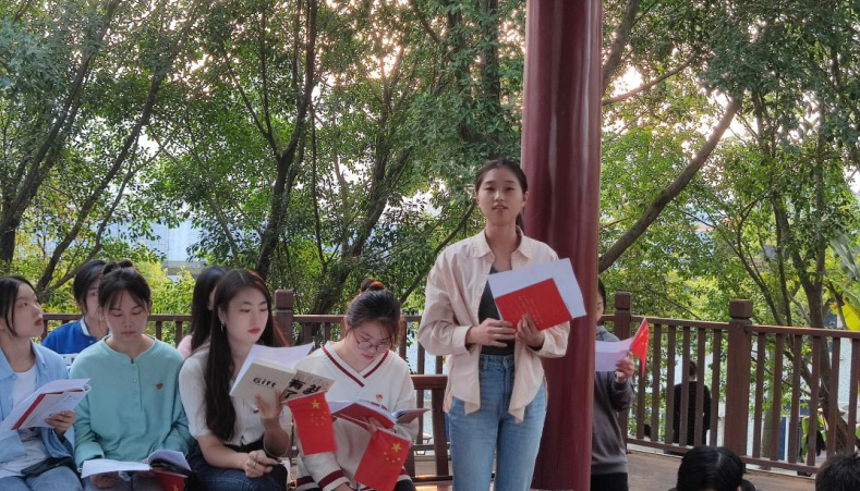 (文/图 管理学院 李洲莲)为深入学习贯彻党的二十大会议精神,管理学院学生第二党支部于10月22日在第一教学楼室外亭子处开展了“薪火青年说”第八期“学习党的二十大报告精神”主题党日活动。