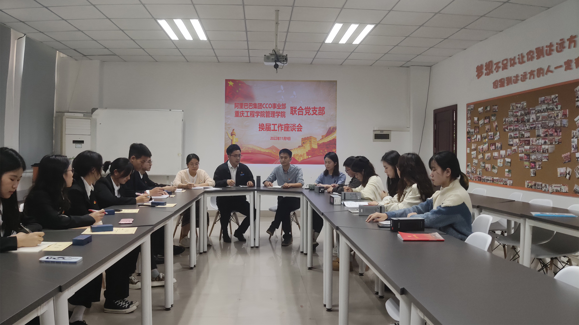 (文/图 管理学院 陈雨露)为加强党支部班子建设,充分发挥党支部的战斗堡垒作用,阿里巴巴集团CCO事业部·重庆工程学院管理学院联合党支部于11月9日在第三教学楼召开了换届工作座谈会。管理学院党总支副书记尚伟、组织委员荣菁菁、青年委员曾艳灵,联合党支部书记赵鹏飞、上一届及本届支委会成员参加了本次座谈会,会议由联合党支部学生党员黄钢主持。
