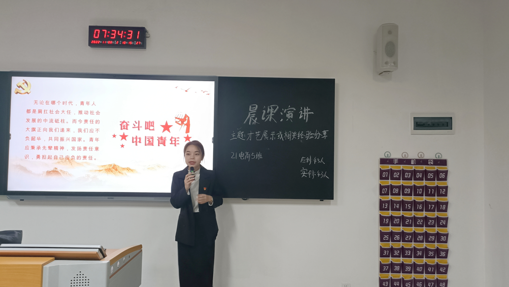 清晨,学生预备党员们以饱满的热情和积极向上的精神风貌走进了晨课教室,向2021级同学们讲述了学校的相关规章制度。其中,刘芯同学围绕学生日常行为、课堂纪律以及寝室生活三个方面,向同学们讲解该如何去遵守校规校纪。同学们听完后,纷纷表示将在今后的学习生活中严格要求自己,用实际行动诠释新时代青年大学生的责任与担当,共同营造一个积极向上、学风优良的校园环境。