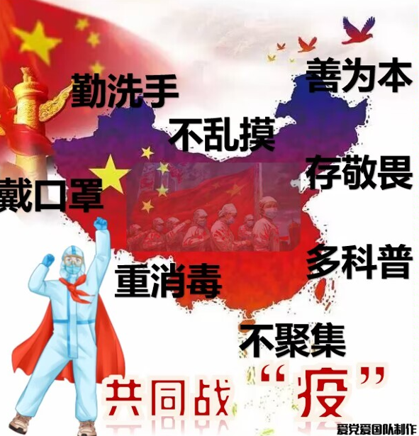 “爱党爱国队”结合当下严峻的疫情形势,设计了“共同战‘疫’”海报。面对来势汹汹的疫情,广大党员在行动。一个个忙碌的身影,一幅幅感人的画面,勾勒出逆行者们的勇者形象。