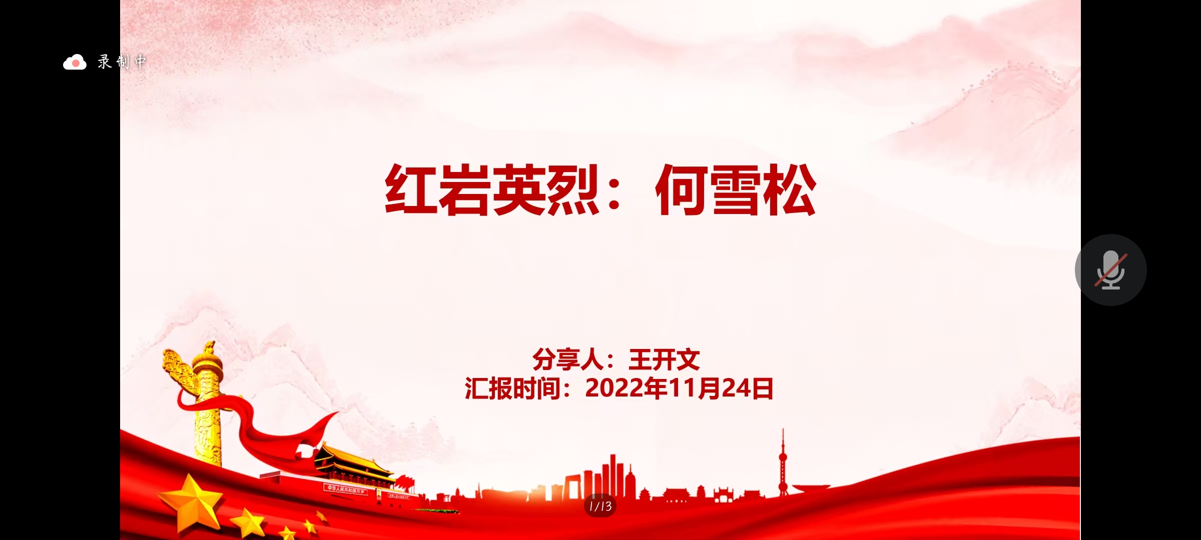 活动中,五位同学分享了先辈们的故事。郝肖洋同学分享了彭雪枫将军的爱国故事,呼吁同学们积极参与学校的志愿服务活动,发挥带头作用。韦金池同学分享了长征故事,红军战士,不畏艰险,他们所展现出的长征精神值得我们传承和弘扬。高成燕同学讲述了“时代楷模”朱彦夫的故事,让大家感受到了他那忘我奉献的楷模初心和艰苦奋斗的精神品质,并呼吁同学们不要因为疫情而停滞不前,要保持正确的学习态度。王开文同学通过“红岩英烈”何雪松的故事,号召同学们学习他那赴汤蹈火而不辞、刀锯鼎镬而不惧的浩然正气。刘芳同学通过杨靖宇将军的故事,呼吁同学们生逢其时,肩负重任,铭记历史,在青春中拼搏奋进。活动最后,主持人进行了随机提问,大家纷纷分享了听后感悟。